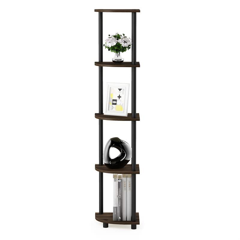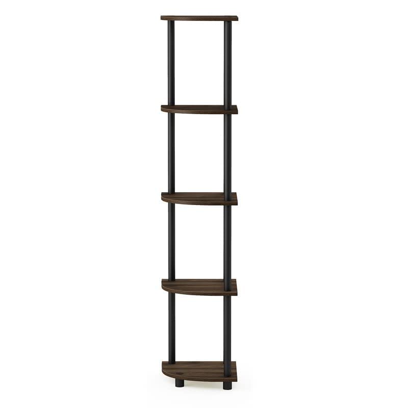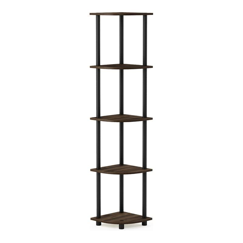 Furinno Turn-N-Tube 5 Tier Corner Display Rack Multipurpose Shelving Unit, 1-Pack, Columbia Walnut/Black