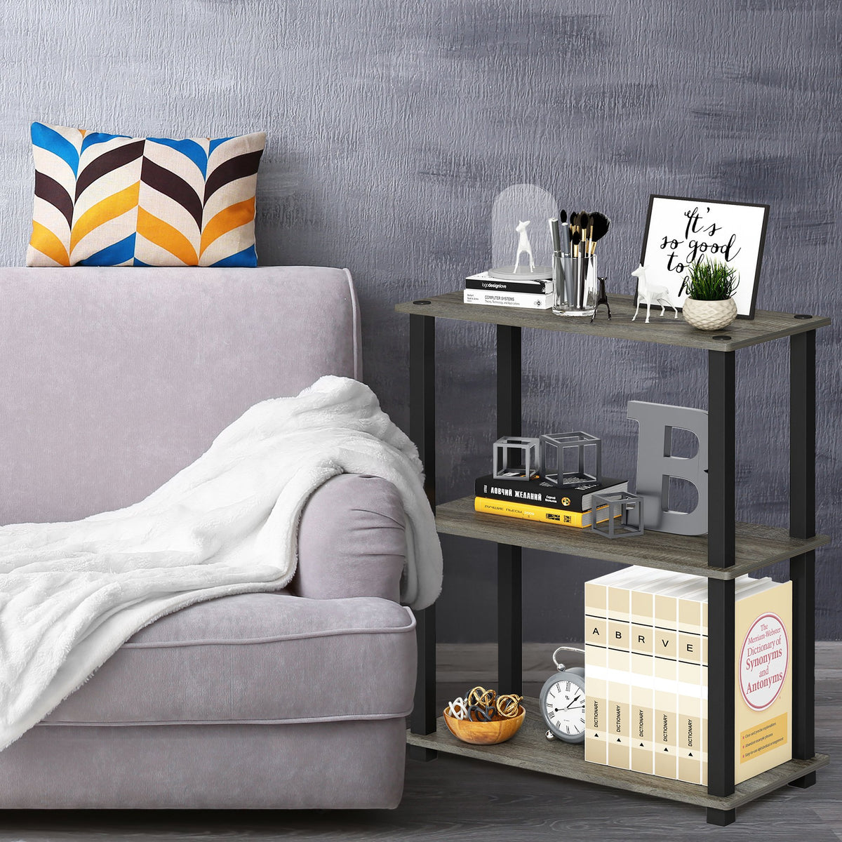 Furinno Turn-S-Tube 3-Tier Compact Multipurpose Shelf Display Rack With Square Tube, French Oak Grey/Black