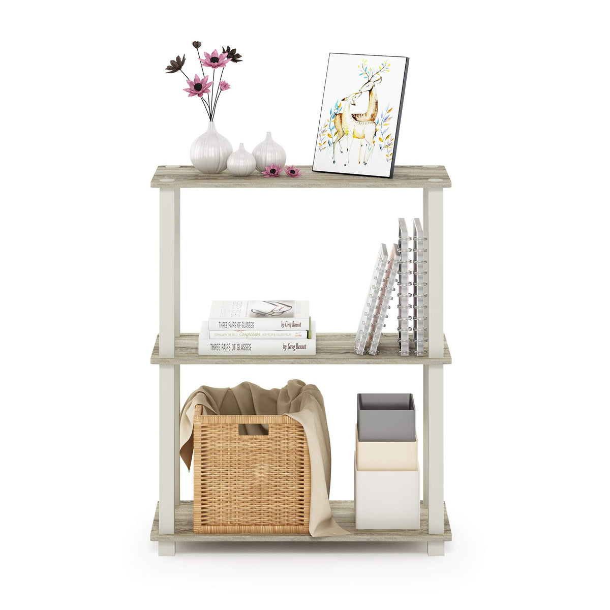 Furinno Turn-N-Tube Series Storage Shelves Comes In 2-3-4-5-Tiers And Variety Of Width And Depth. This Series Of Products Also Includes Difference Sizes Width, Height And Different Fun Colors. This Series Is Designed To Meet The Demand Of Fits In Space, Fits On Budget And Yet Durable And Efficient Furniture. It Is Proven To Be The Most Popular Rta Furniture Due To Its Functionality, Price, And The No Hassle Assembly. There Are No Screws Involved, Thus It Is Totally Safe To Be A Family Project. Just Turn The Tube To Connect The Panels To Form A Storage Shelf. The Materials Comply With Particle Board For Furniture Processed From Parts Of Rubber Trees. There Is No Foul Smell Of Chemicals, Durable And It Is The Most Stable Medium Density Composite Wood Used To Make Rta Furniture. Care Instructions: Wipe Clean With Clean Damped Cloth. Avoid Using Harsh Chemicals. Pictures Are For Illustration Purpose. All Decor Items Are Not Included In This Offer.