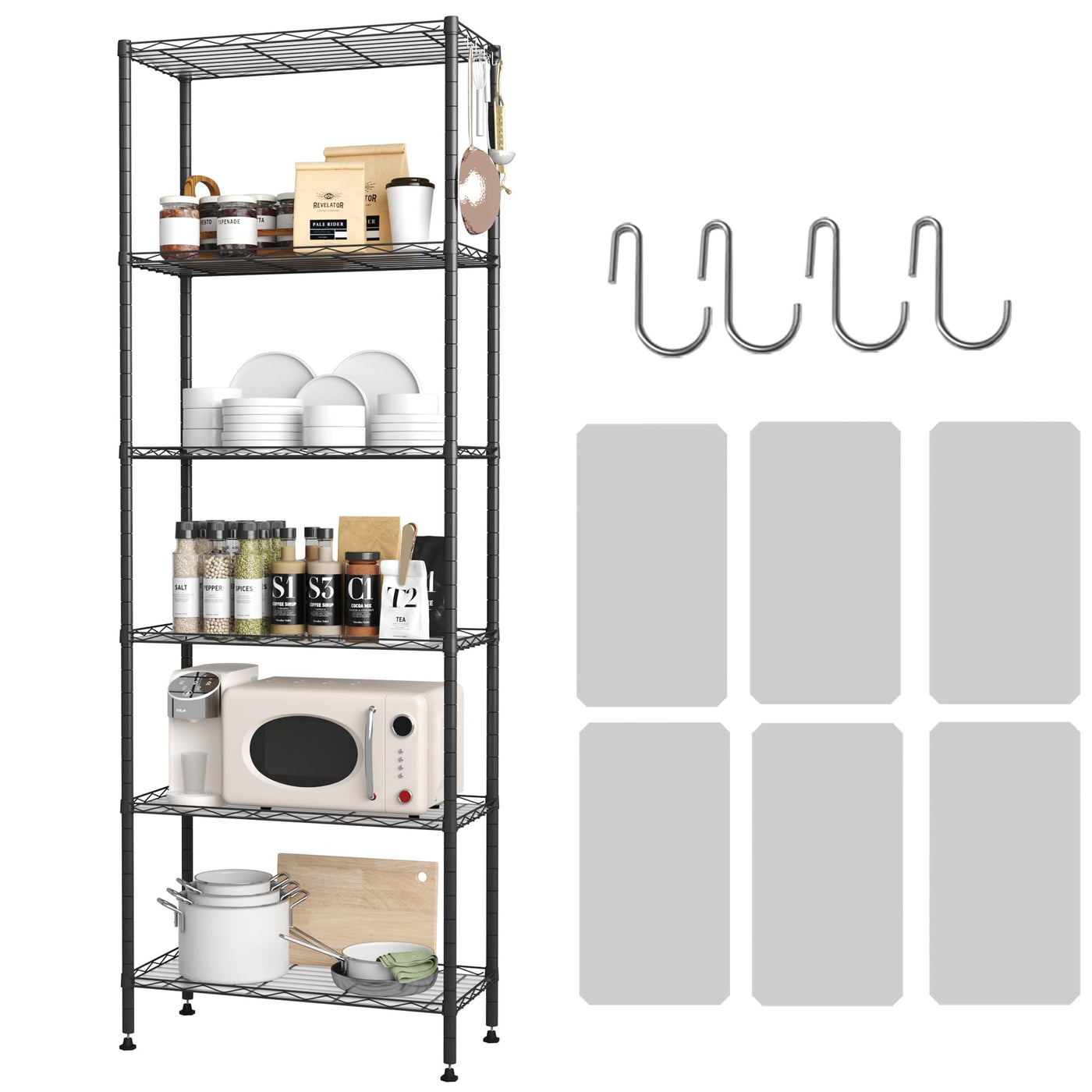 Homefort 6-Shelving Unit, Adjustable Wire Shelving, Metal Wire Shelf With Shelf Liners And Hooks For Kitchen, Closet, Bathroom, Laundry, Black,21' W X 11' D X 69' H