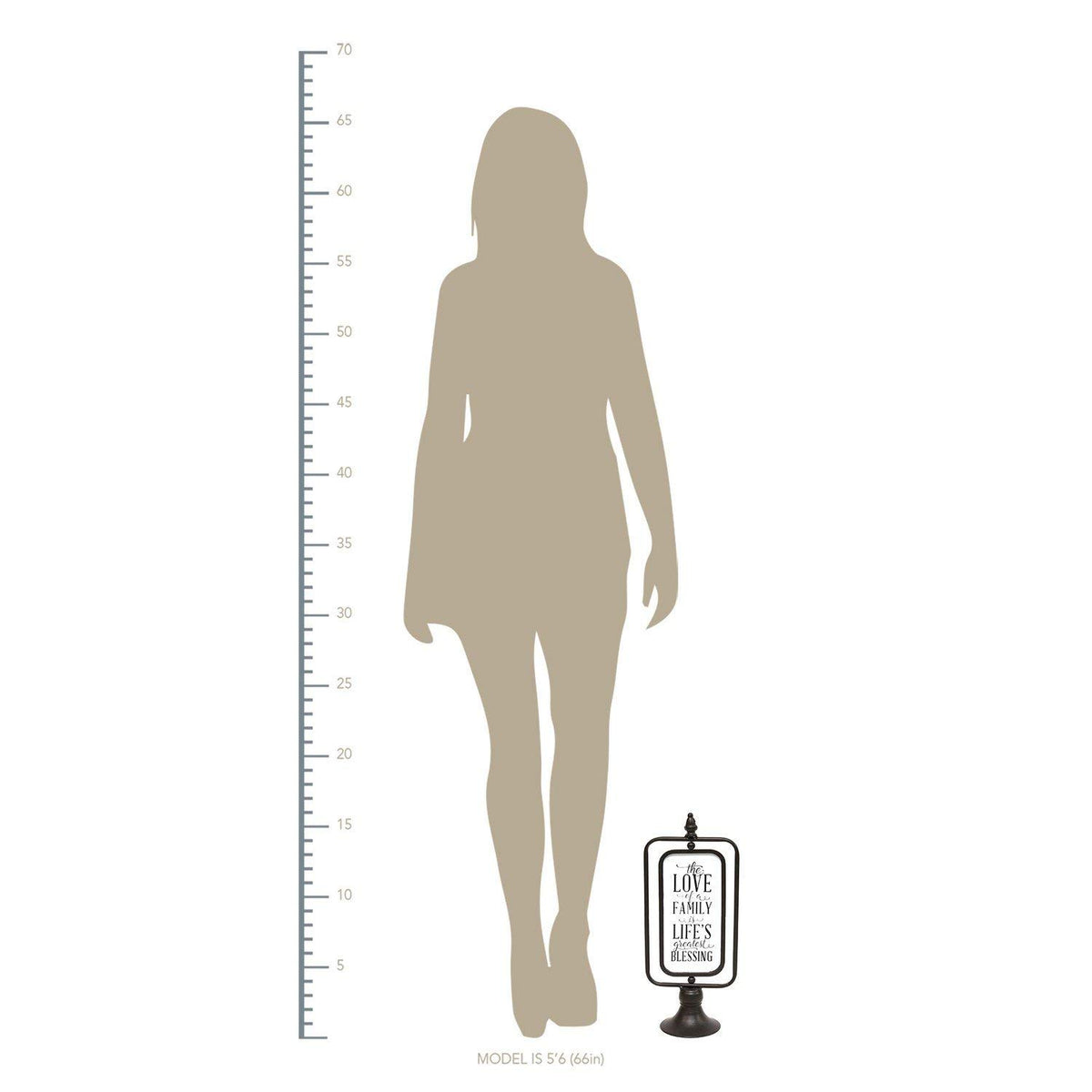 Add an enchanting touch to your decor with the "Love of a Family" Metal Table Top Accent. Handcrafted of all metal made to look like a vintage sign from long ago and emblazoned with the saying "The Love of Family is Life's Greatest Blessing," this decorative accent goes right to the heart and serves as an affectionate reminder to all what matters most. Its timeless message and nostalgic design are perfect for any setting. It measures 6.79" L x 3.75" W x 16" H overall and the inside sign swivels so it's easy to place anywhere and still be seen.