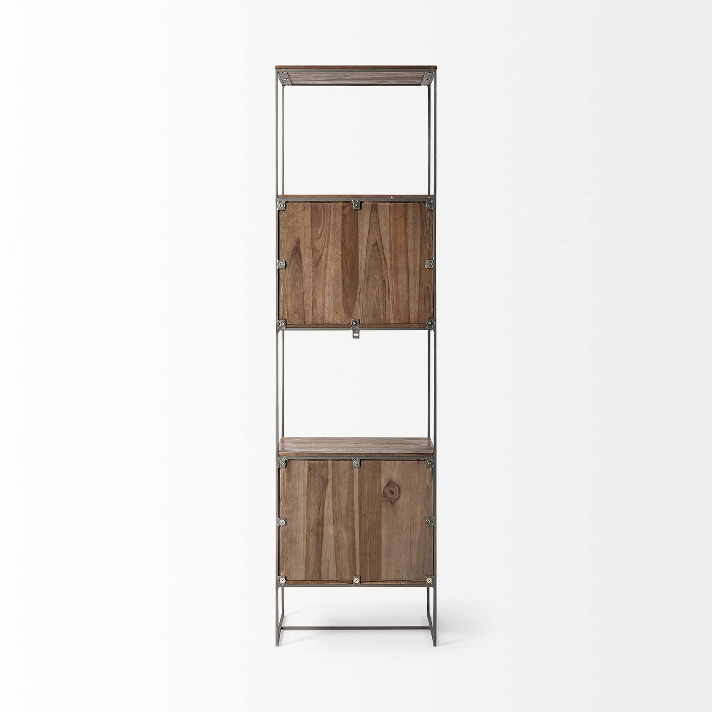 HomeRoots Brown Wood and Silver Metal Frame with 4 Shelf Shelving Unit designed for practical use