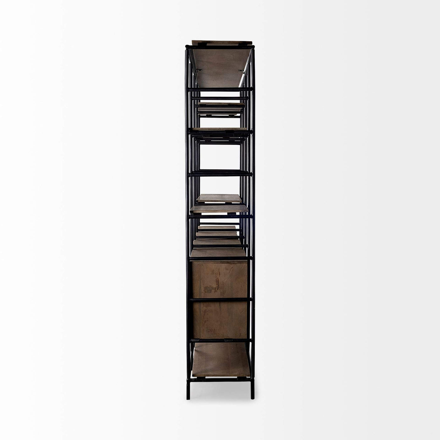 HomeRoots Medium Brown Wood and Metal Multi Shelves Shelving Unit