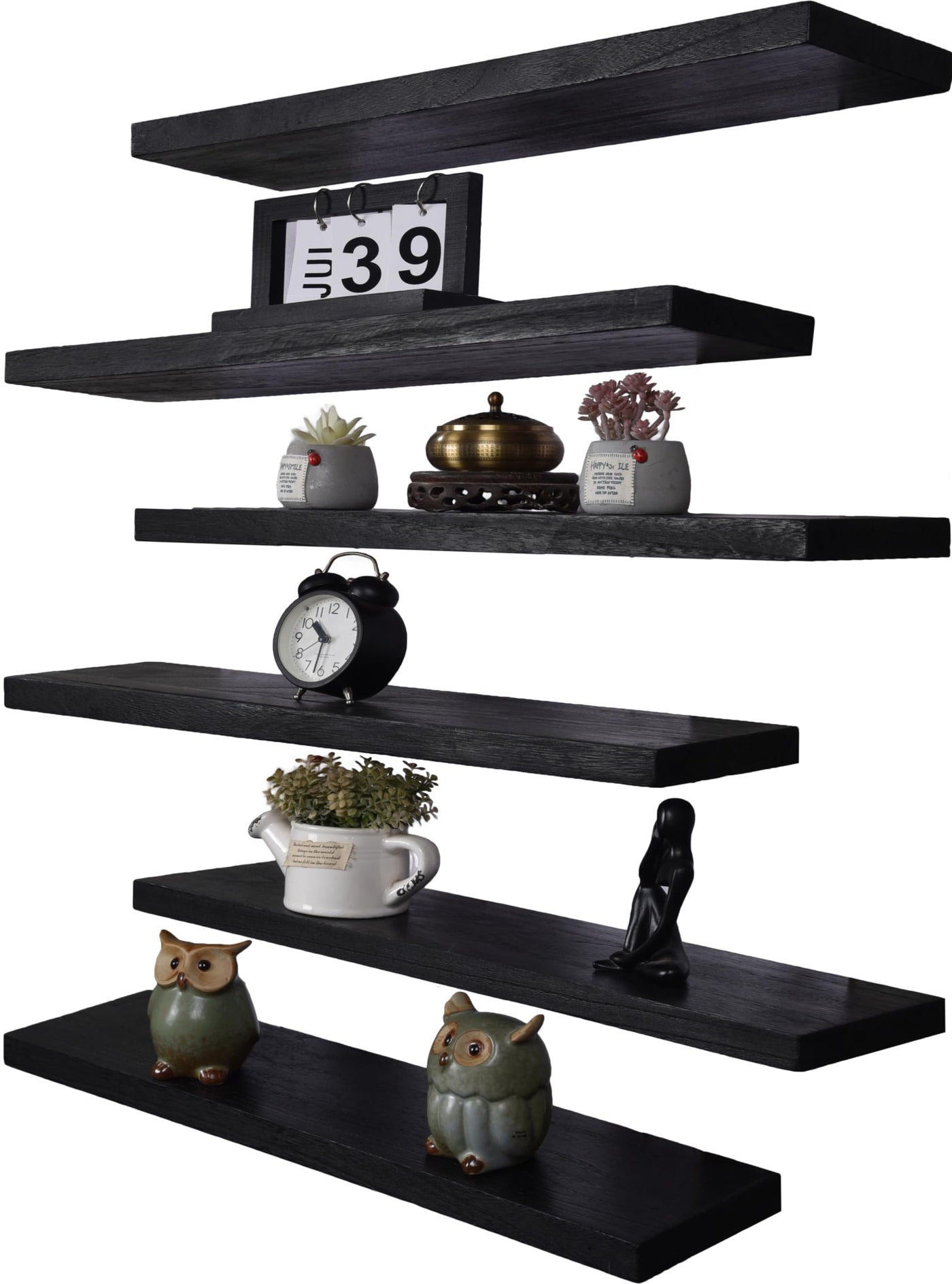 Hxswy 24 Inch Rustic Floating Shelves Wall Mounted Farmhouse Wooden Wall Shelf For Bathroom Kitchen Bedroom Living Room Set Of 6 Black