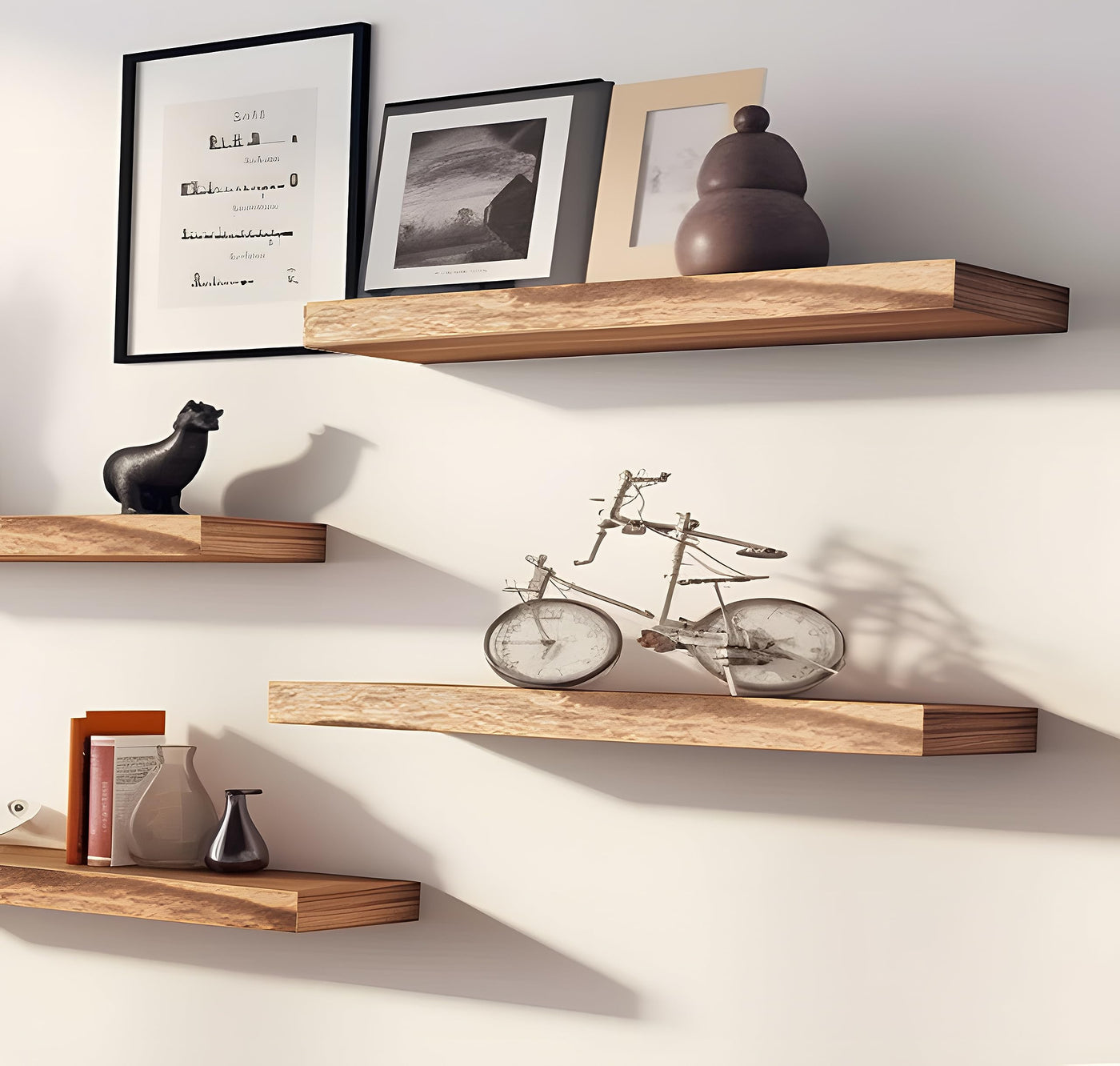 Hxswy Rustic Wood Floating Shelves For Wall Decor Farmhouse Wooden Wall Shelf For Bathroom Kitchen Bedroom Living Room Set Of 4 Light Brown 16 Inch