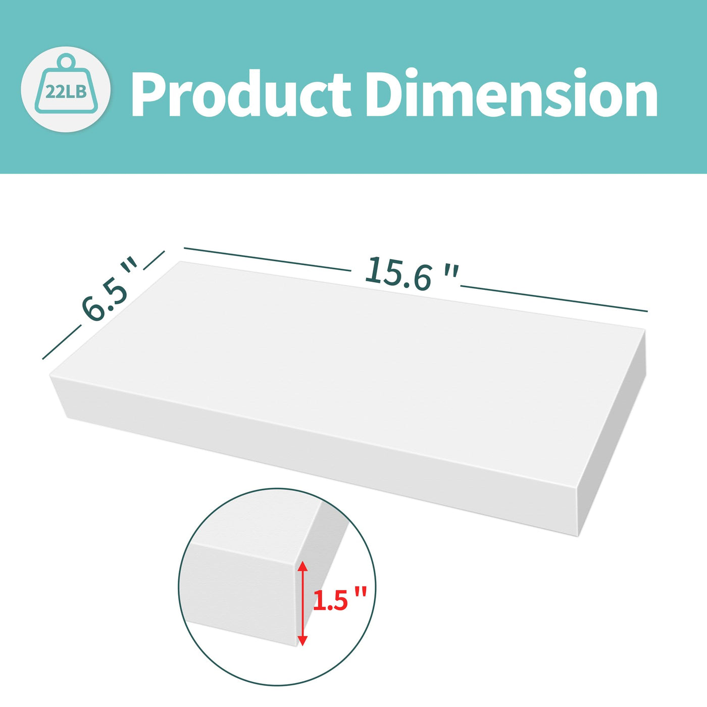 Lavie Home Floating Shelves, 15.6 Inch Wall Shelf Set Of 3, Hanging Shelf With Invisible Brackets, Wall Decor For Bathroom, Bedroom, Living Room, Kitchen Storage, Modern White