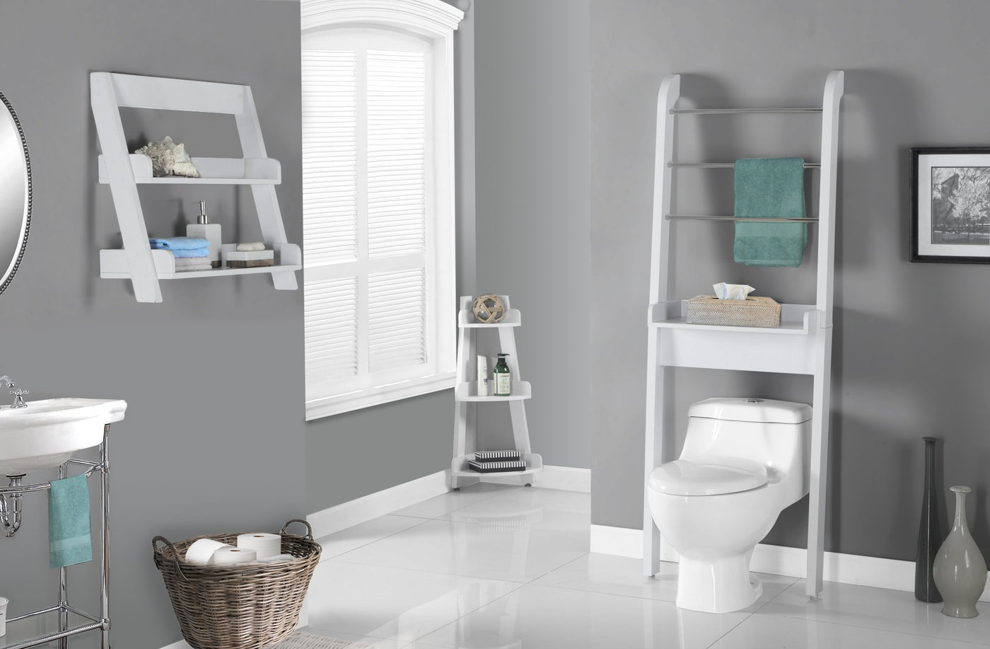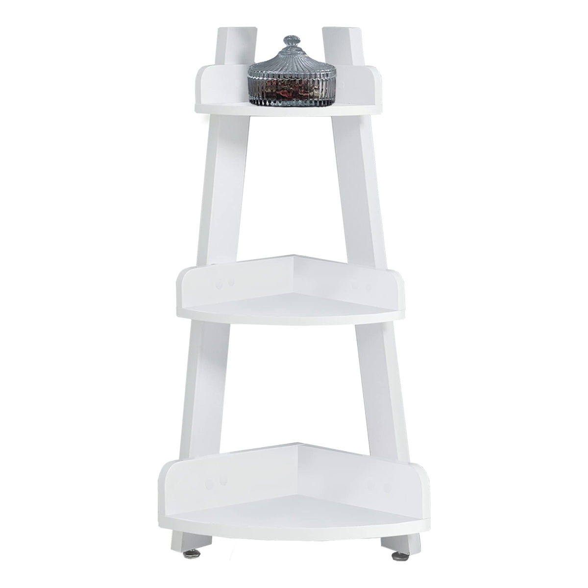 This white corner etagere offers a stylish solution to needing more storage space in your home. Featuring a three tiered design and a bold, modern white finish, use this convenient unit for keeping essential toiletries within reach as you need them or simply to display your favorite decorative items.