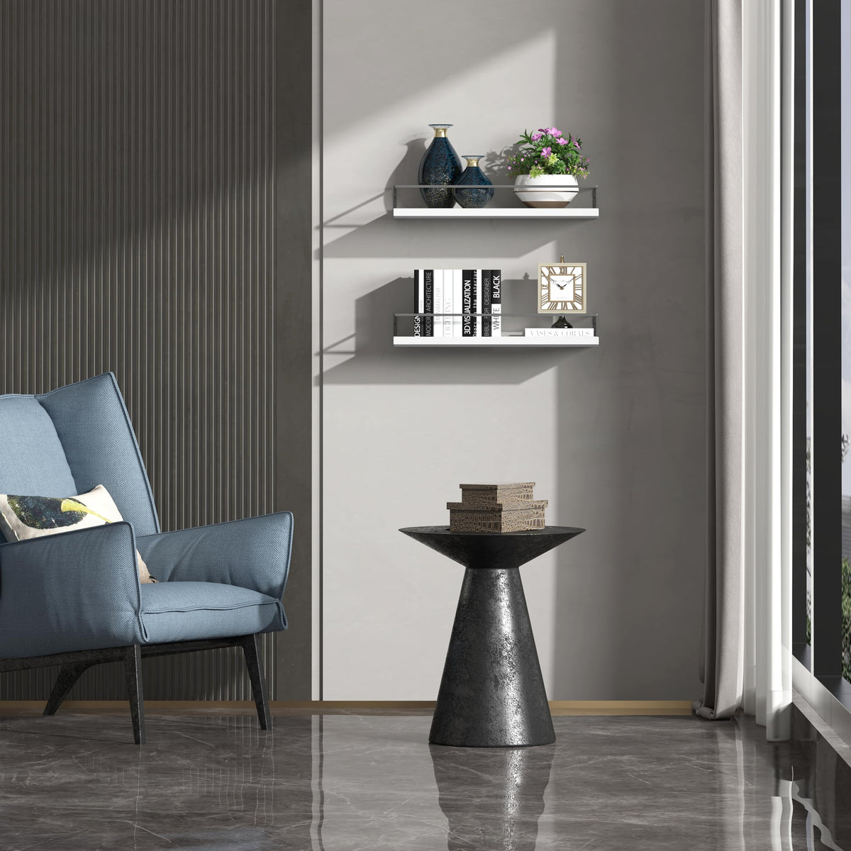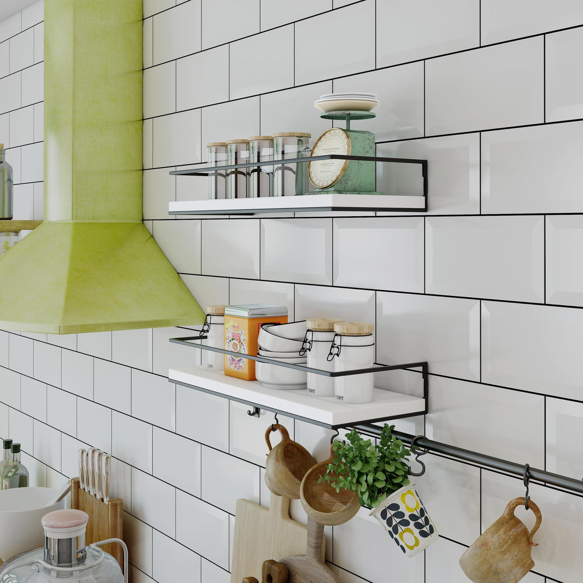 Shario Floating Shelves - Set Of 2, Wall Mounted Hanging Shelves With Golden Towel Rack, Decorative Storage Shelves For Bathroom, Kitchen, Living Room & Bedroom (White Grey)