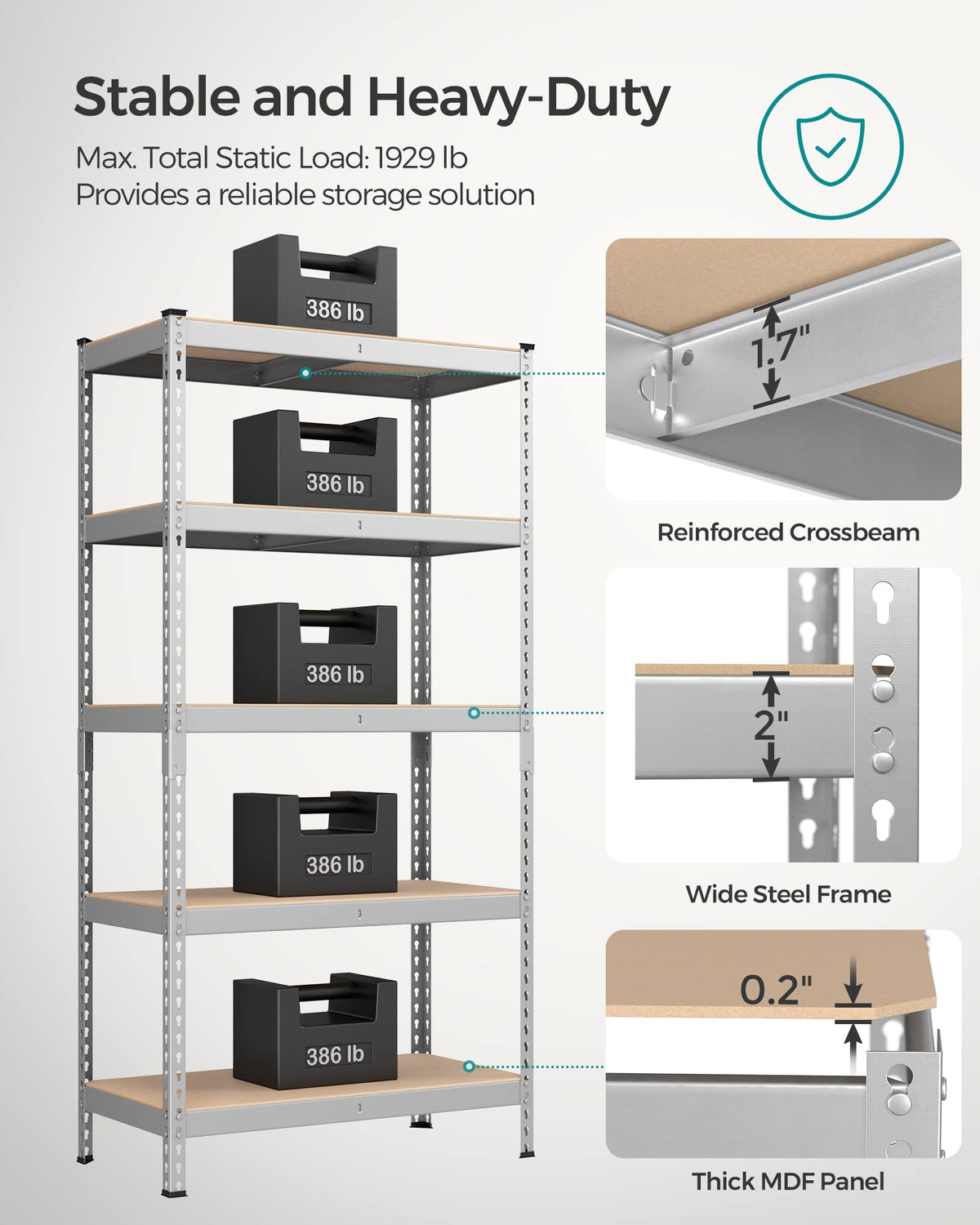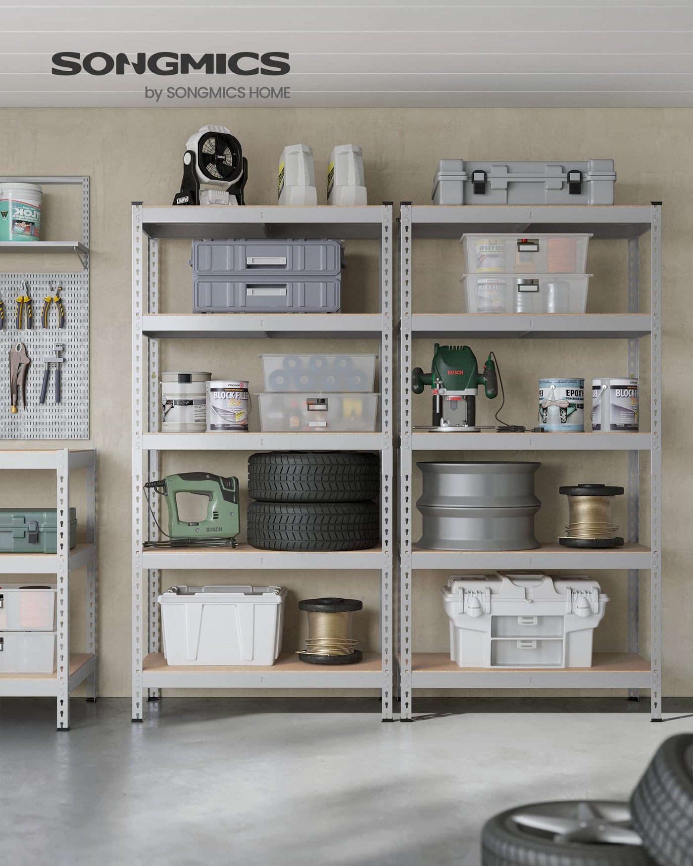 Songmics 5-Tier Storage Shelves, Set Of 2 Garage Storage, Boltless Assembly, Adjustable Shelving Units, 17.7 X 35.4 X 70.9 Inches, Load 1929 Lb Each, Shed Warehouse Basement, Silver Uglr450E02