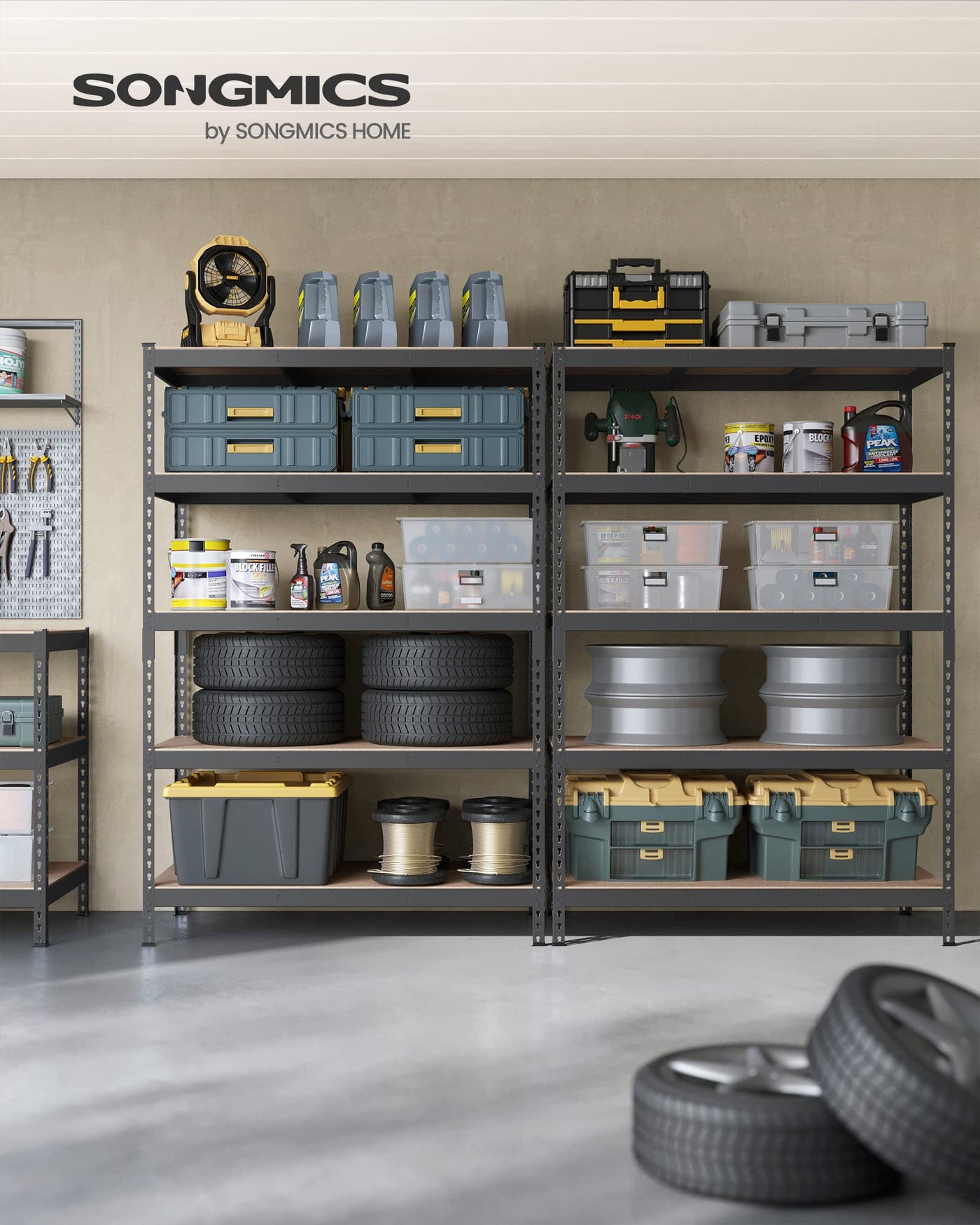 Songmics 5-Tier Storage Shelves, Set Of 2 Garage Storage, Boltless Assembly, Adjustable Shelving Units, 23.6 X 47.2 X 70.9 Inches, Load 1929 Lb Each, Shed Warehouse Basement, Gray Uglr600G02