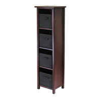 Verona 4-Section N Storage Shelf with 4 Foldable Black Color Fabric Baskets