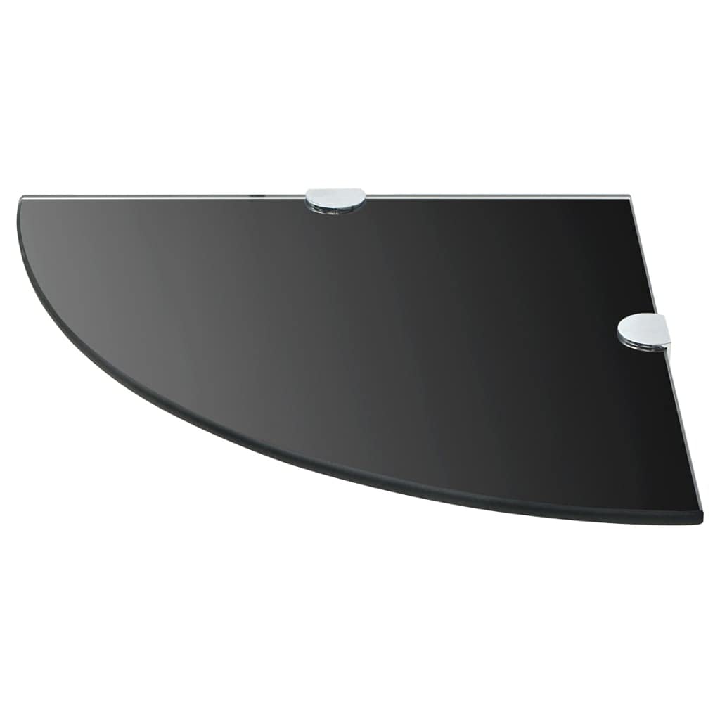 vidaXL 2 pcs Wall Corner Shelves with Chrome Supports - Durable Tempered Glass - Black - 9.8" Square - Easy to Install Floating Design Shelf for Living Room, Kitchen, or Bathroom