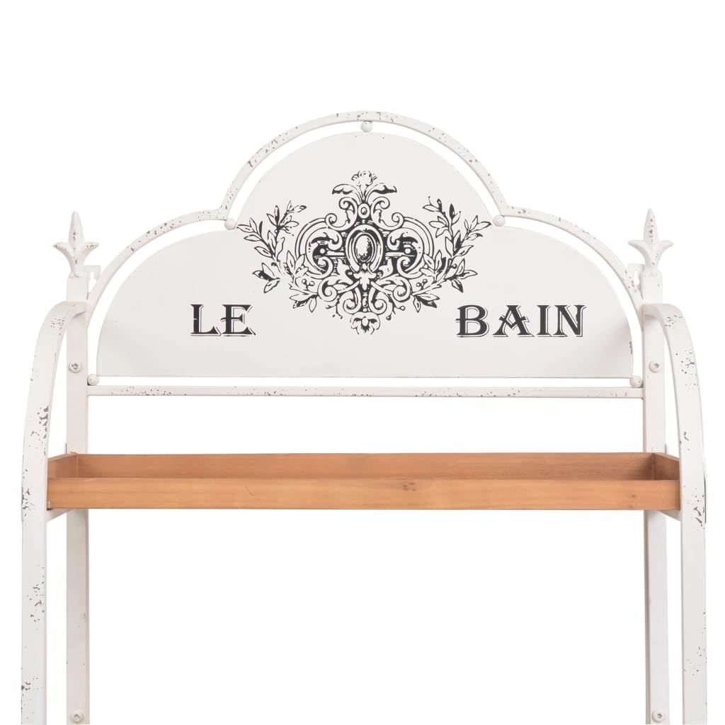 This beautiful shelving unit has a vintage-style, romantic design and will make a great addition to your home decor. As its retro print suggests, it will be ideal for the bathroom but it can of course also be used in other rooms.The freestanding bathroom shelf has a frame constructed from steel and 4 solid fir shelves that have ample space for your towels and care and grooming products. When used in the living room or a bedroom, the shelves are ideal for books, decorative items, or even clothes. In the kitchen, this rustic shelving unit can hold supplies and kitchen appliances. The combination of wood and steel adds to the shelving unit’s vintage, romantic style.Assembly is easy.