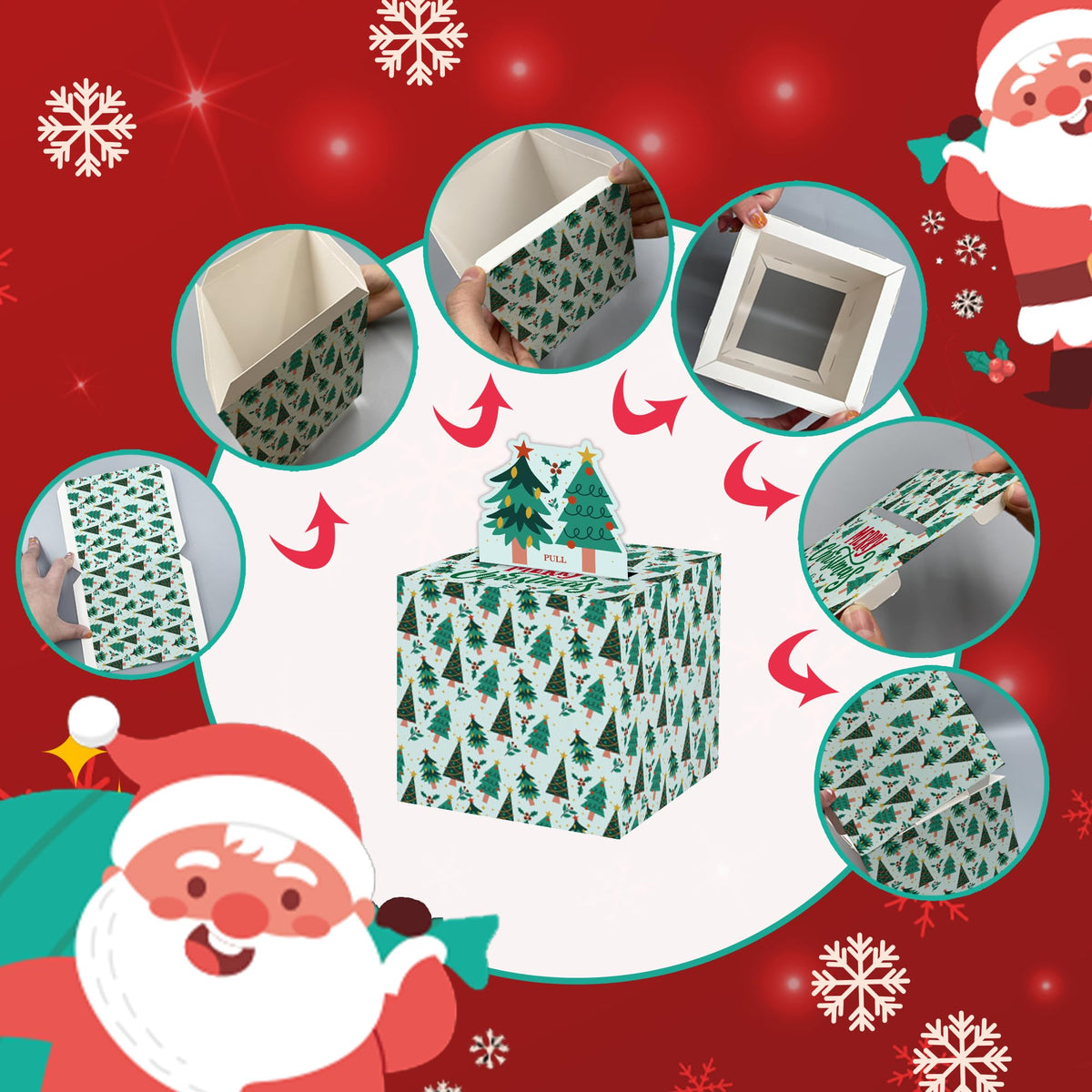 Q: What materials is the money box made from?A: The money box is made from durable cardboard, ensuring it can withstand handling and adds a festive touch to your gifting.