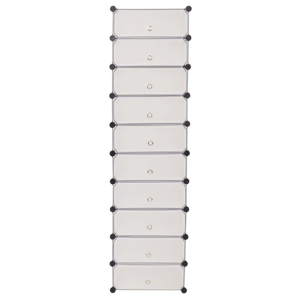 vidaXL Shoe Organizer with 10 Compartments - Resistant Plastic and Steel Construction - White Interlocking Shoe Storage - Easy Clean and Assembly, Lightweight