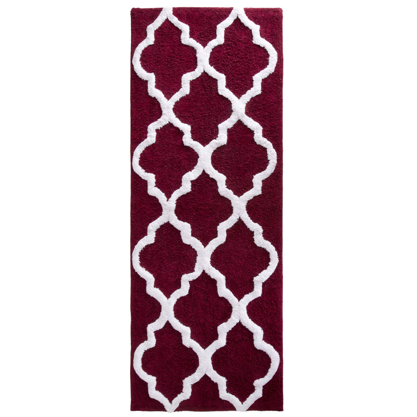 100% Cotton Bathroom Rug - 24X60-Inch Bathmat With Trellis Pattern And Non-Slip Base - Machine Washable Bathroom Rugs By Lavish