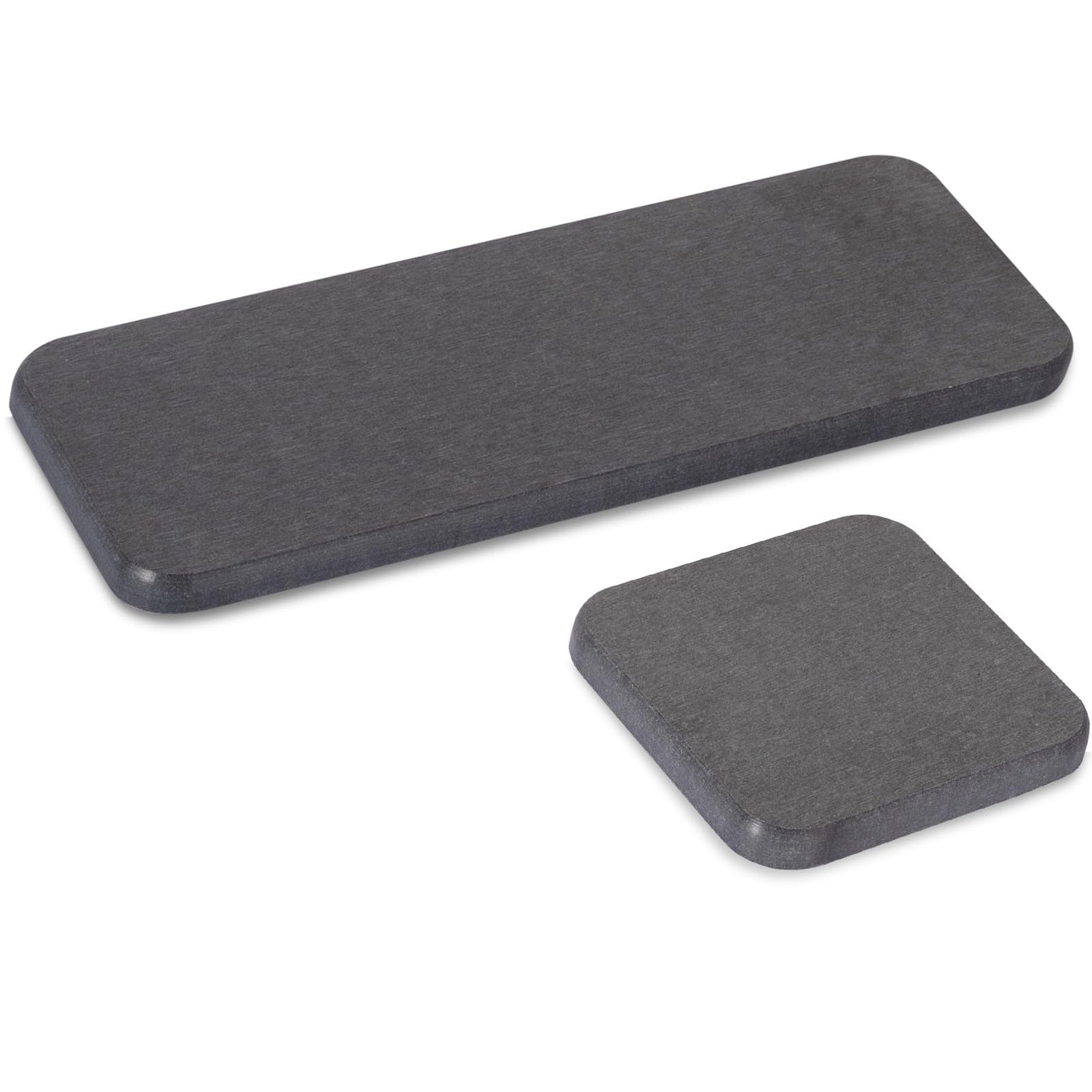 Q: What are the dimensions of the water absorbing stone tray?A: The tray comes in two sizes: the small tray measures 3.5" x 3.5" and the large tray measures 8.7" x 3.5", making it perfect for compact spaces or for organizing various bathroom and kitchen items.