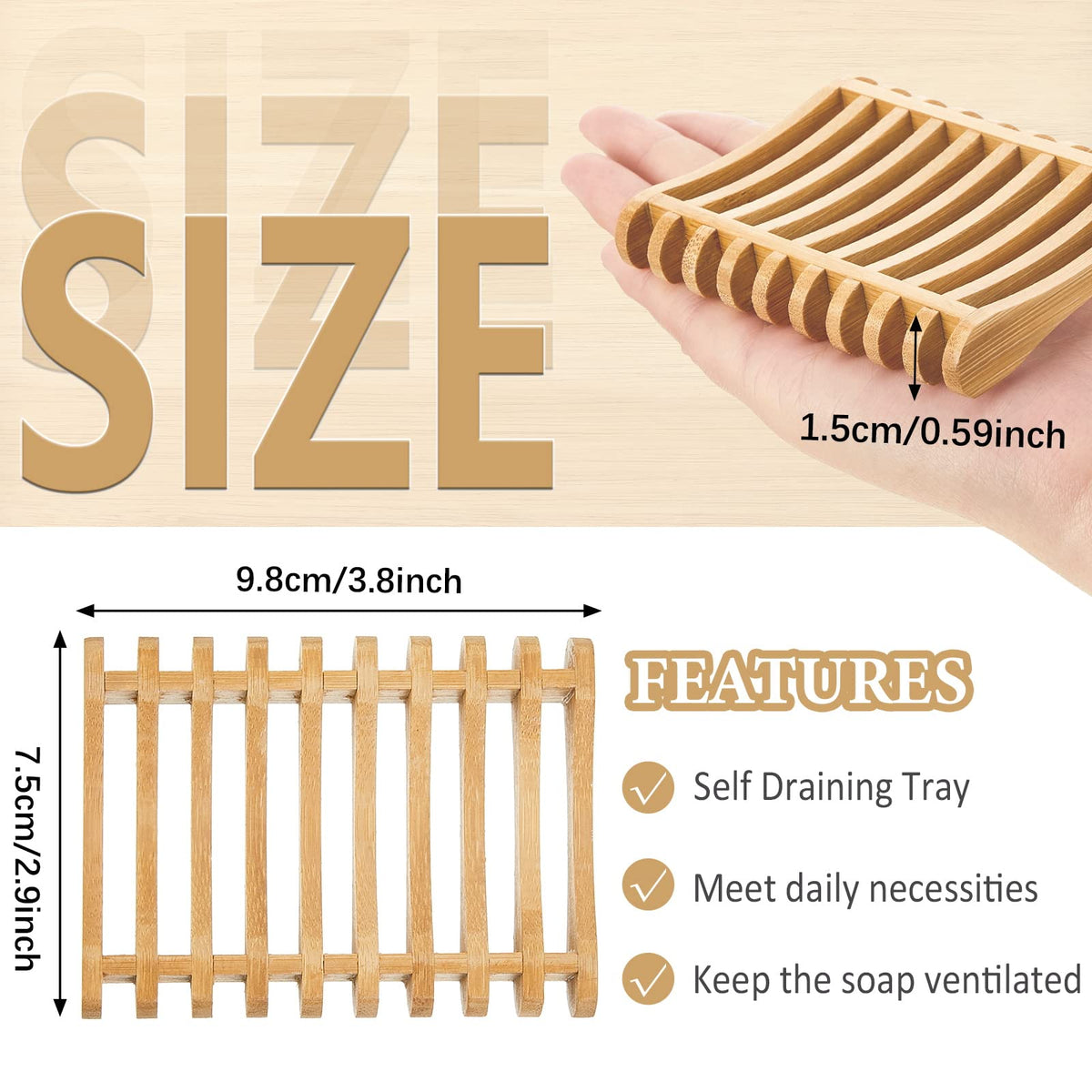 Q: What are the dimensions of the Suclain bamboo soap dishes?A: The Suclain bamboo soap dishes measure approximately 9.8 x 7.5 x 1.5 cm, or 3.86 x 2.95 x 0.59 inches, making them a suitable size for various bathroom and kitchen settings.