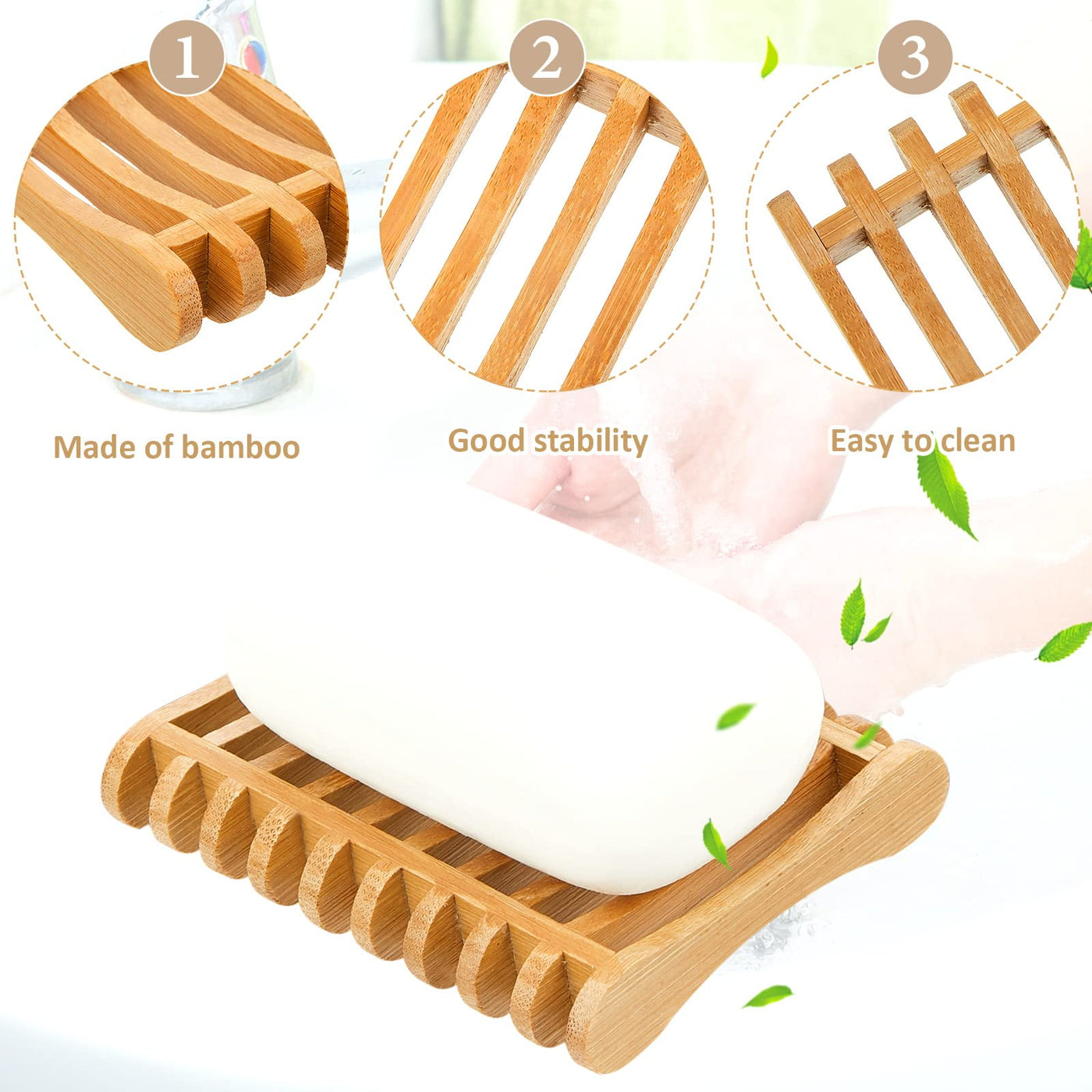 3 Pieces Bamboo Soap Dishes Self Draining Wooden Soap Dishes Wood Bar Soap Holder For Soap Sponge Dryer Bathroom Toilet Shower K