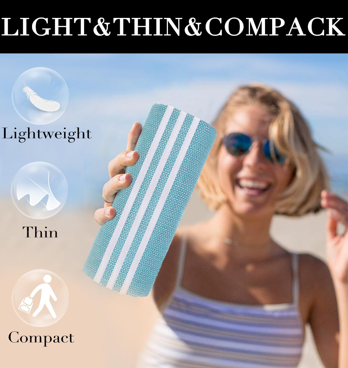 Q: What makes these Turkish beach towels quick-drying?A: These Turkish beach towels are crafted from a specialized fabric that absorbs moisture efficiently, allowing them to dry quickly after use. This feature ensures you stay dry and comfortable during your beach or pool outings.