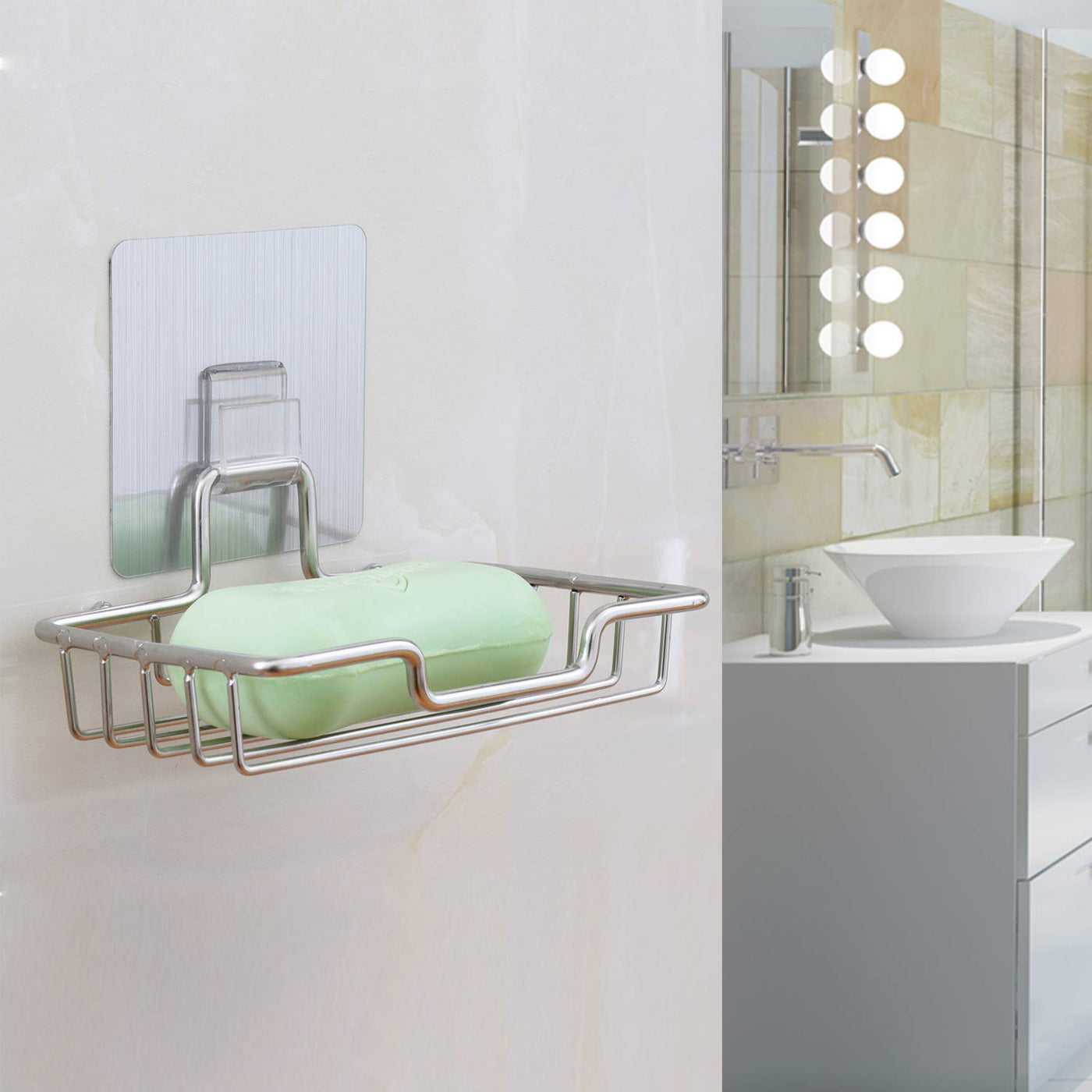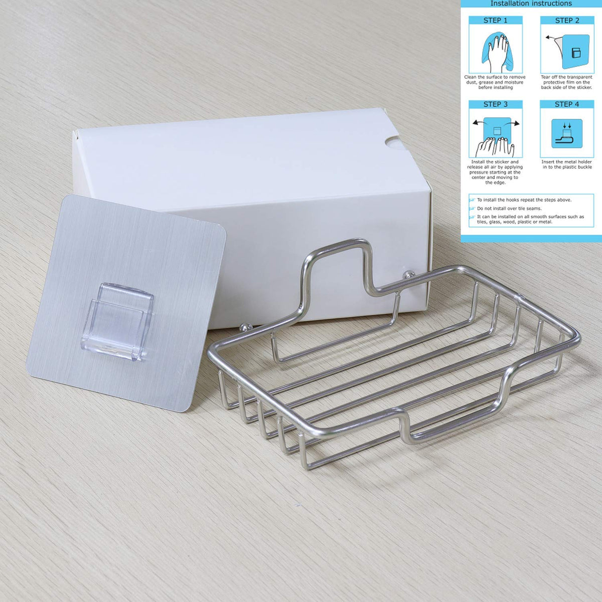 Adhesive Soap Dish, Admeya Stainless Steel No Drilling Powerful Sponge Holder Tray With Powerful Wall Mounted For Shower, Bathro