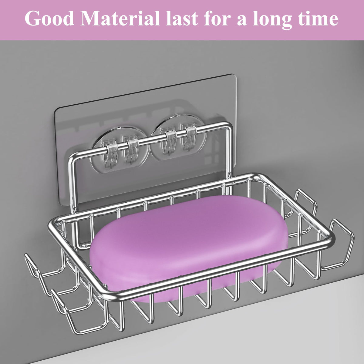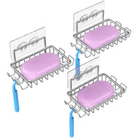 Ailibuligo Adhesive Soap Bar Holder Dish For Shower Wall With Hooks, Silver, 3 Pack