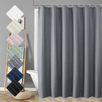 Q: What materials is the Aiyufeng Moga Grey Shower Curtain made of?A: The shower curtain is made of high-quality soft fabric that features a 3D embossed texture, providing a luxurious and sophisticated look.
