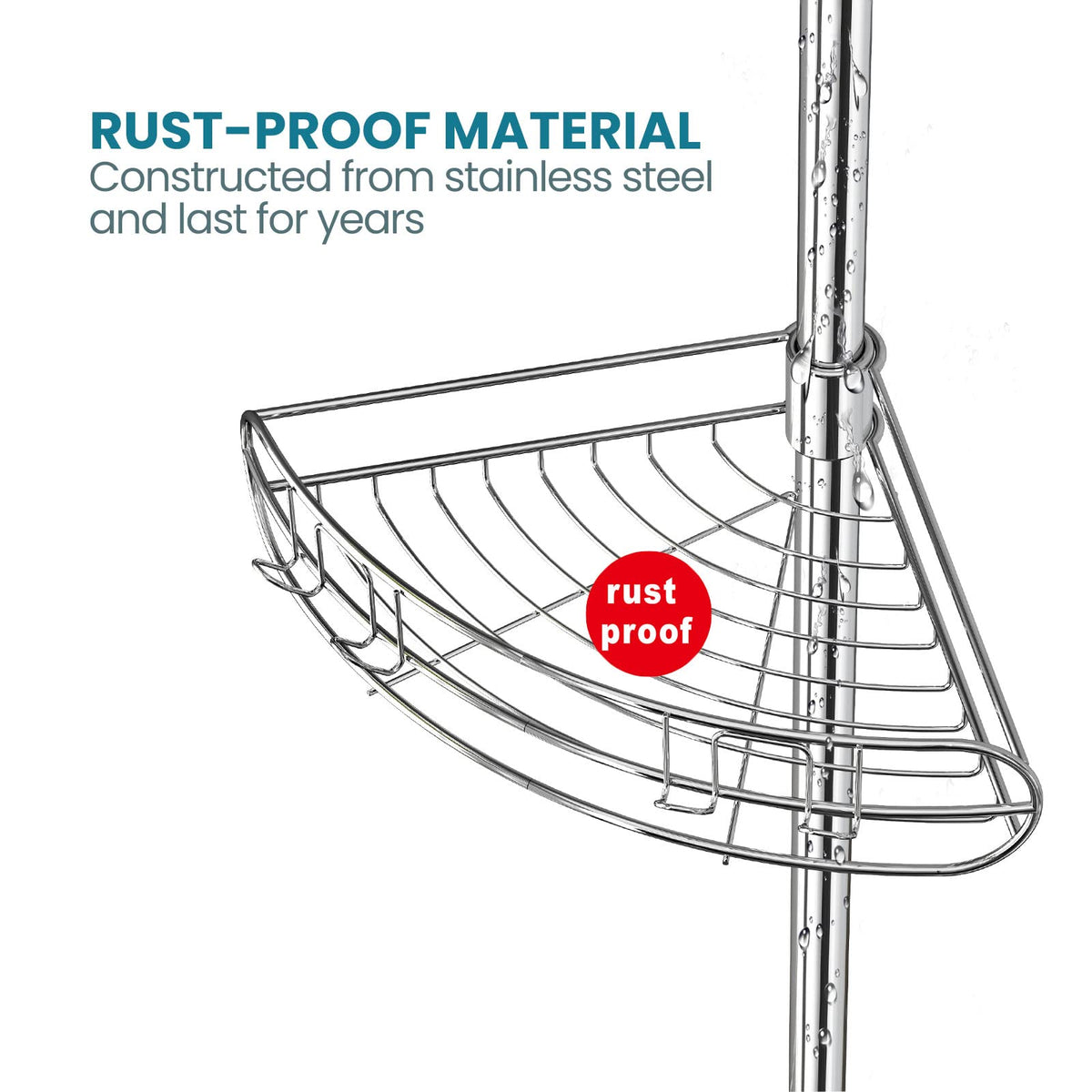 Q: Is the ALLZONE Corner Shower Caddy rustproof?A: Yes, the ALLZONE Corner Shower Caddy is constructed from premium SUS 304 stainless steel, which is rustproof. This ensures durability and longevity, even in humid bathroom environments.