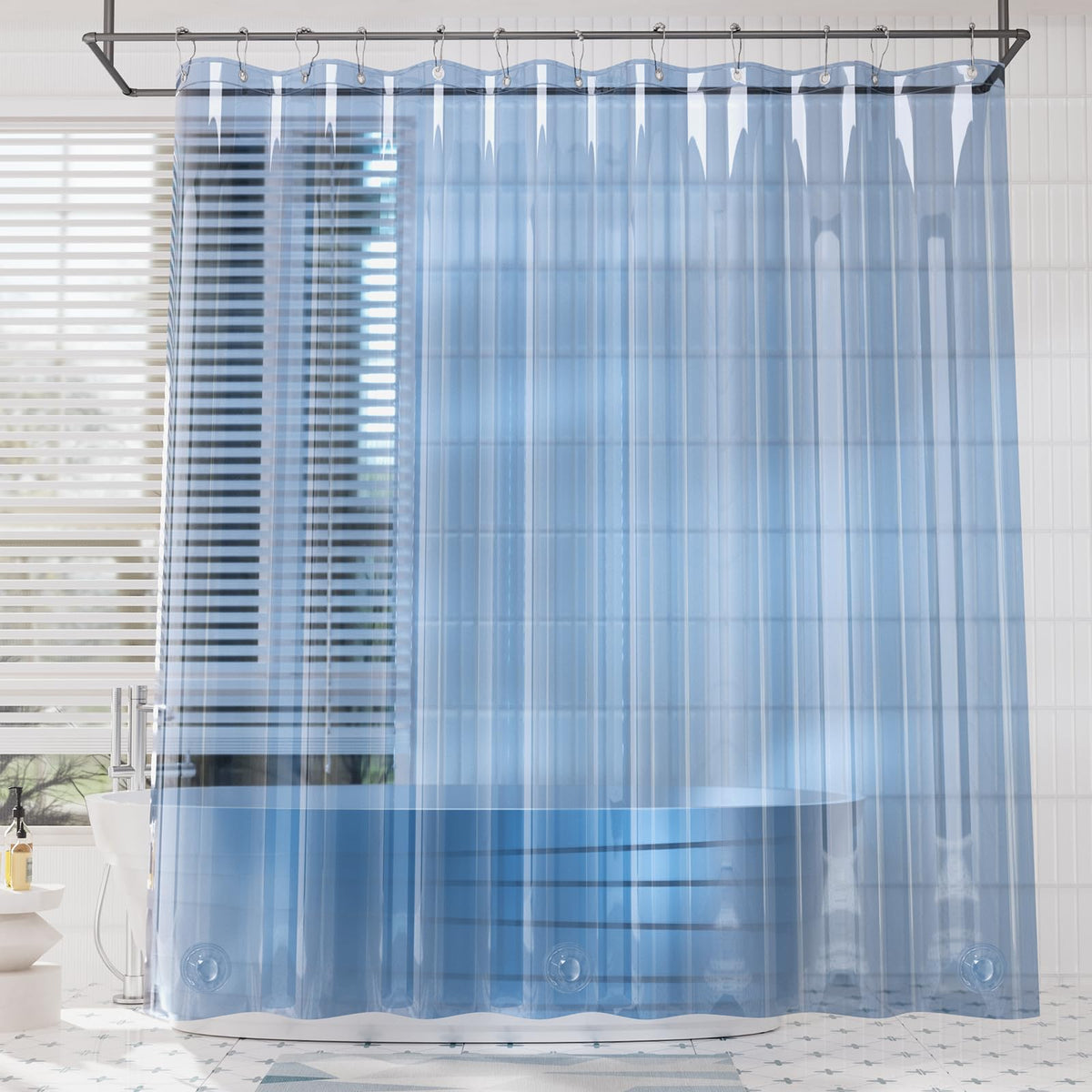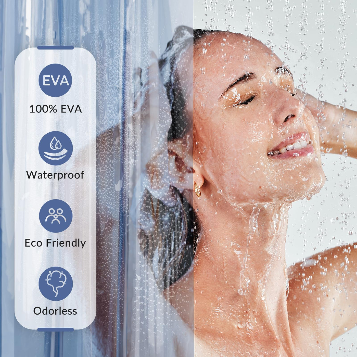 Amazerbath Premium Eva Shower Curtain Clear Blue, Luxury Shower Curtain Blue Jelly-Like Soft, Waterproof Bathroom Shower Curtain