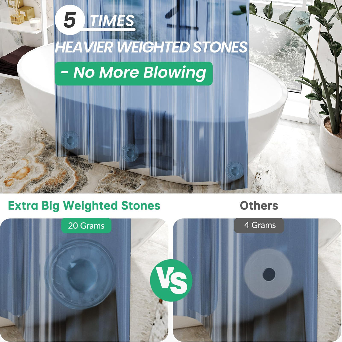 Amazerbath Premium Eva Shower Curtain Clear Blue, Luxury Shower Curtain And Liner Jelly-Like Soft, Waterproof Bathroom Shower Curtain With 3 Weighted Stones And 12 Grommets, Recyclable Packaging