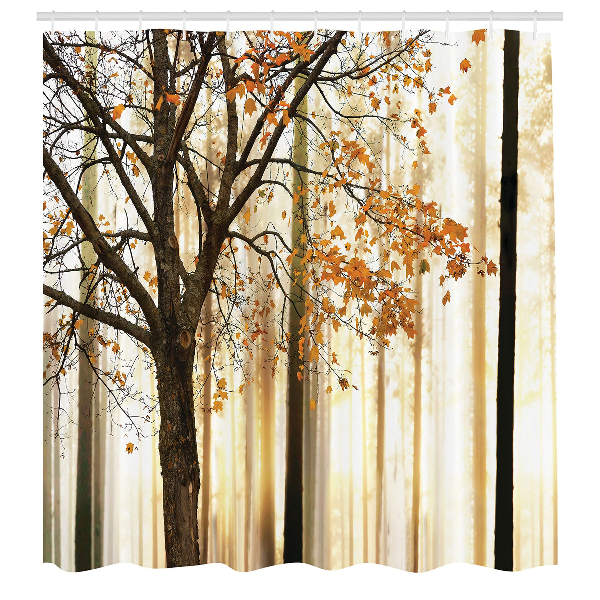 Ambesonne Autumn Shower Curtain, Fall Season Theme Picture Of A Forest Tree Leaves An Abstract Woodland Background Print, Cloth