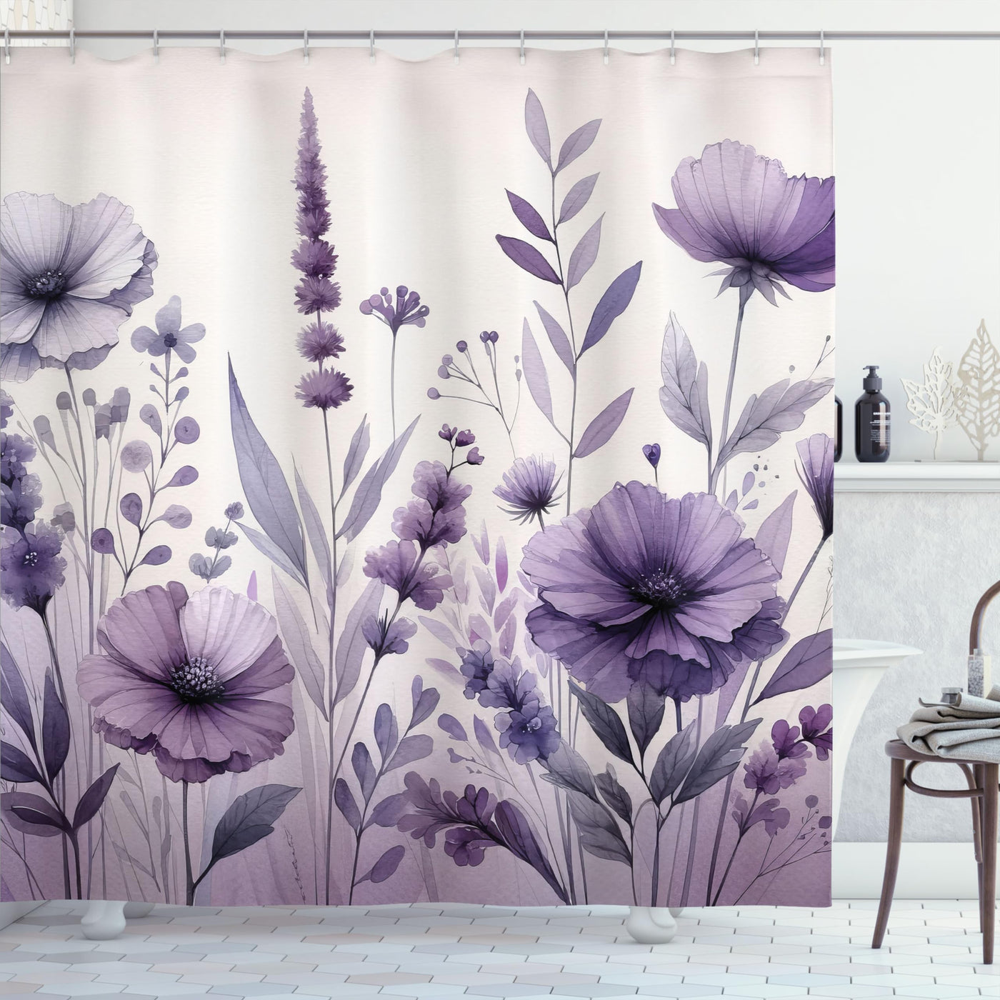 Q: What are the dimensions of the Ambesonne Purple Shower Curtain?A: The Ambesonne Purple Shower Curtain measures 69 inches wide by 75 inches long, making it suitable for most standard shower sizes.