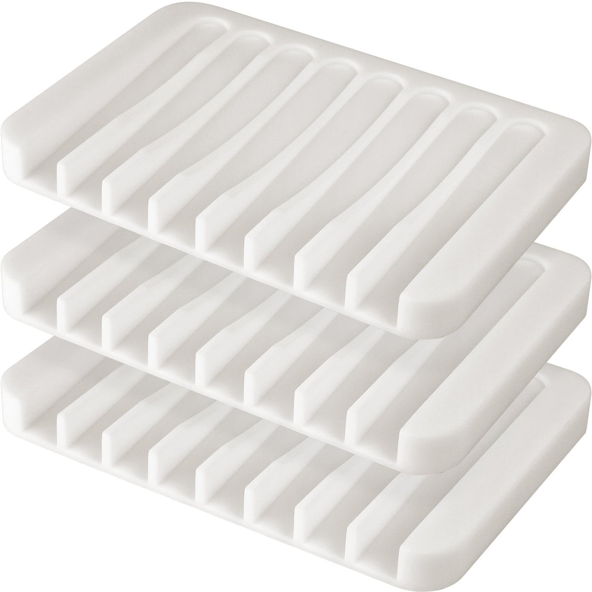 Anwenk Soap Dish Soap Holder Tray Saver Drainer For Shower Bathroom,Silicone Soap Dish Waterfall & Anti-Slip Design, White, 3 Pa