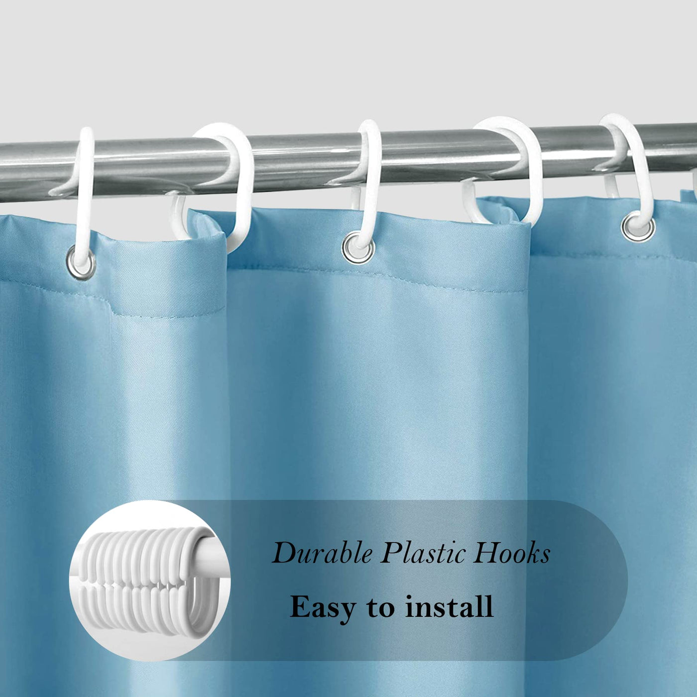 Aoohome Extra Long Shower Liner, Fabric Bathroom Curtain With Hooks For Hotel, Weigthed Hem, Waterproof, 72 X 84 Inch, Blue