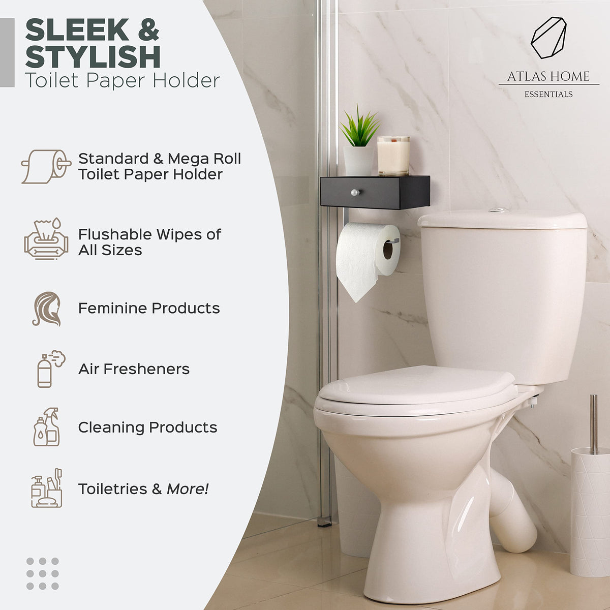 Atlas Home Toilet Paper Holder With Shelf - Flushable Wipes Dispenser & Storage Fits Any Bathroom, Keep Your Wet Wipes Hidden -