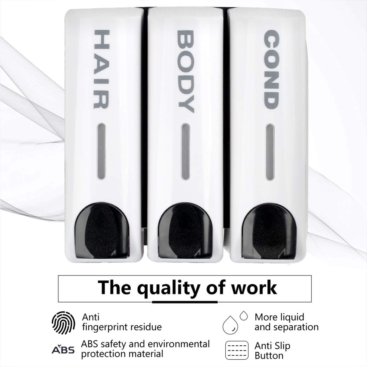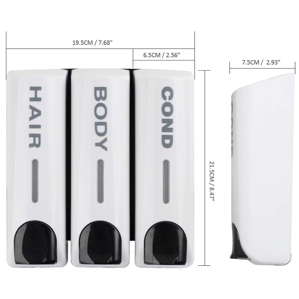 Note: This Product Is 100% Loaded Into The Clean Water Test In The Production Process. If Water Drops Are Found In The Product, Water Mist Is A Normal Phenomenon.. Suggest: Because The Concentration Of The Washing Liquid Such As Shampoo, Hair Lotion, Body Wash And Hand Soap In Different Regions Is Different, If The Concentration Of The Above Washing Liquid Is Too Concentrated, It Is Strongly Recommended To First Put The Soap Dispenser Into The Water To Press The Normal Water. After That, You Can Pour Off The Remaining Water And Then Fill In The Required Washing Liquid. Because This Dispenser Is Not Fit For Thick Conditioner, Shampoo And Etc. Specification: Material: Abs Plastic Dimension: 20X21.5X7.5 Cm / 7.88X8.47X2.93' Dimension Of One Soap Dispenser: 6.5X21.5X7.5 / 2.56X8.47X2.93' Capacity: 350Ml Of Each Output: 1Ml Instructions: (1). Rotate The Lock On The Cap With The Key Provided Counterclockwise And Remove The Cap. (2). Squeeze The Back Side Of The Bottle And The Bottom Plate Buckle, And Use The Other Hand To Push The Bottle Up To Remove The Bottle. (3). Using The Mounting Base Plate As A Template, Mark The Drilling Position Mark On The Wall With A Pen, Then Drill A 6Mm Hole In The Mark, And Then Insert It With The Supplied Rubber Plug, And Fix The Mounting Base Plate To The Wall With Screws. (4). Install The Bottle In The Direction Of The Arrow, Pour The Required Liquid, Cover The Bottle Cap, And Use The Lock To Use It. When There Is Air In The Pump Head For The First Time, Please Press It Several Times Until The Liquid Is Discharged. Package Included: 3X Soap Dispenser 1X Back Plate For 3 Soap Dispenser 2X Keys 4X Screw Set