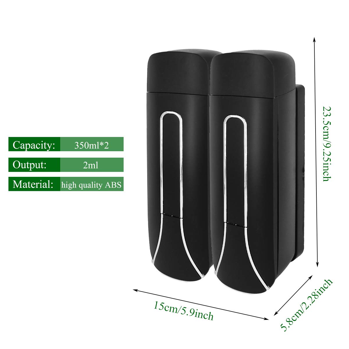 This Shampoo Dispenser Is Used In The Toilets And Shower Rooms Of Hotels, Guesthouses, Homes, Etc. It Can Be Used For Liquids Such As Hand Sanitizer, Shower Gel, Shampoo, And Detergent. Specification: Texture Of Material: Abs Colour: Black Capacity: 2X350Ml Weigh: 600G Output:2Ml Size: 5.8Cm*15Cm*23.5Cm Package Include: Soap Dispenser X1 Set Screw Accessories X2 Pack Instruction Manual X1 ? Installation Method: It Can Be Fixed On The Wall With Screws Or Glass. This Can Save Valuable Limited Space And Keep Other Countertops Clean. Customers Who Do Not Want To Fix With Screws Can Also Purchase Strong Double-Sided Adhesive Or 3M Adhesive.