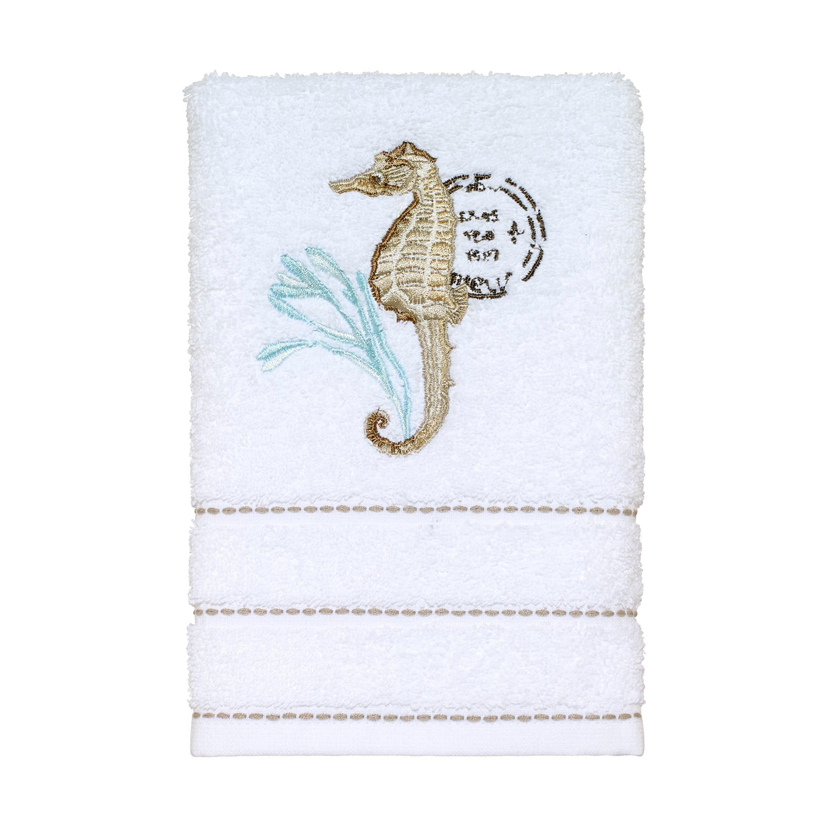 Q: Is this hand towel suitable for a farmhouse-themed bathroom?A: Yes, the Avanti Farmhouse Shell Hand Towel features an embroidered design that combines farmhouse inspirations with seaside icons, making it a perfect addition to a farmhouse-themed bathroom.