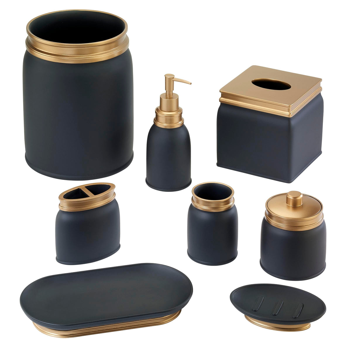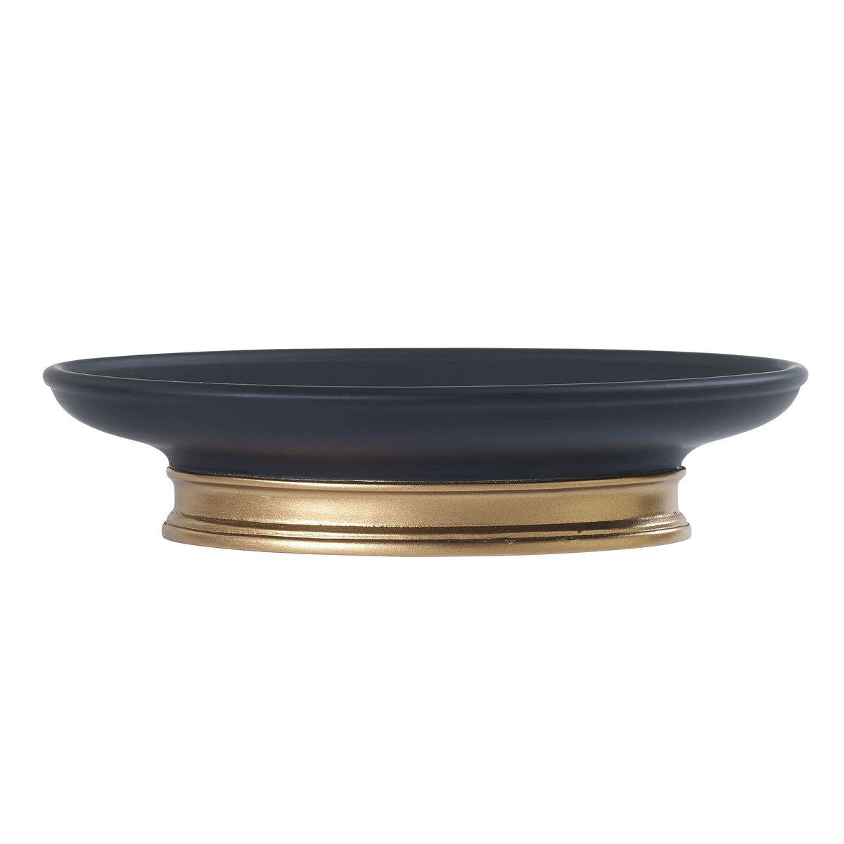 The Memphis Soap Dish From Avanti Home Delivers A Smooth Matte Black Finish With Beveled Industrial Accents In Vintage Gold Metallic. Crafted In Durable Resin For Long Life. Full Coordinating Bath Accessory Collection Is Available. Imported.