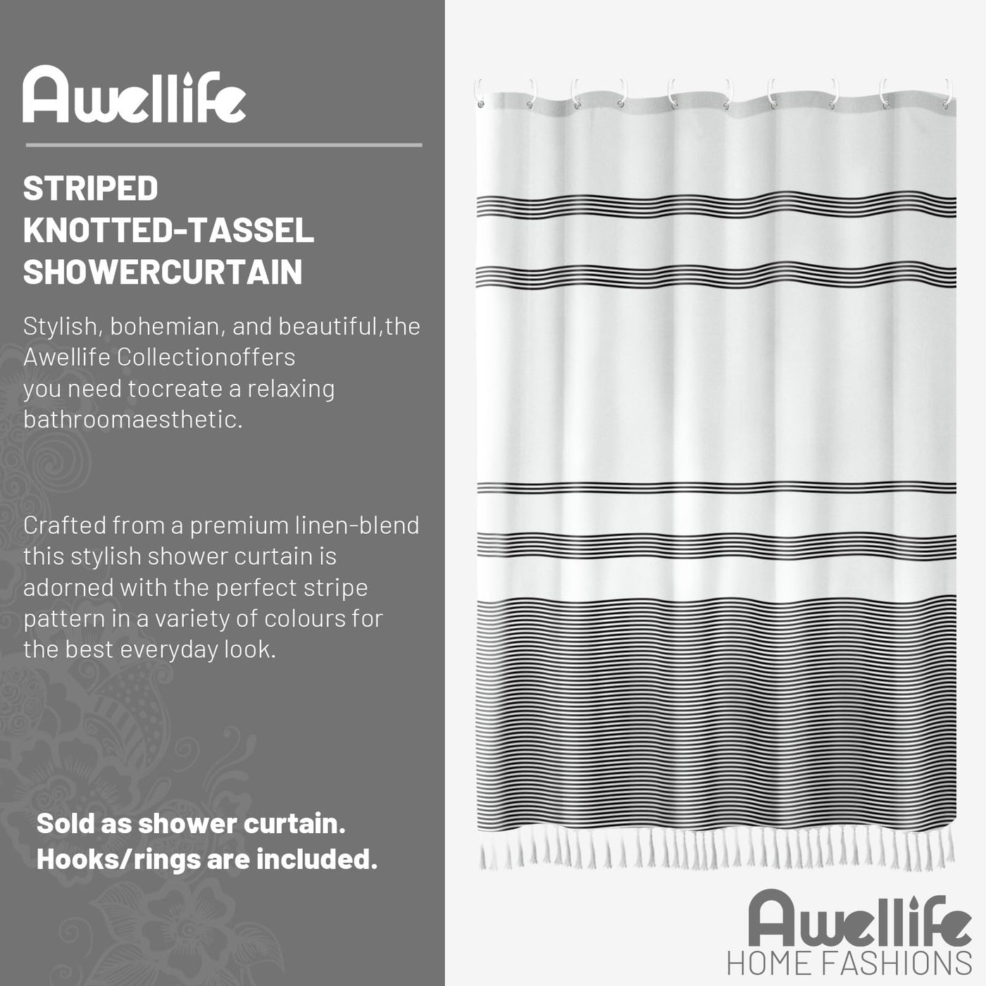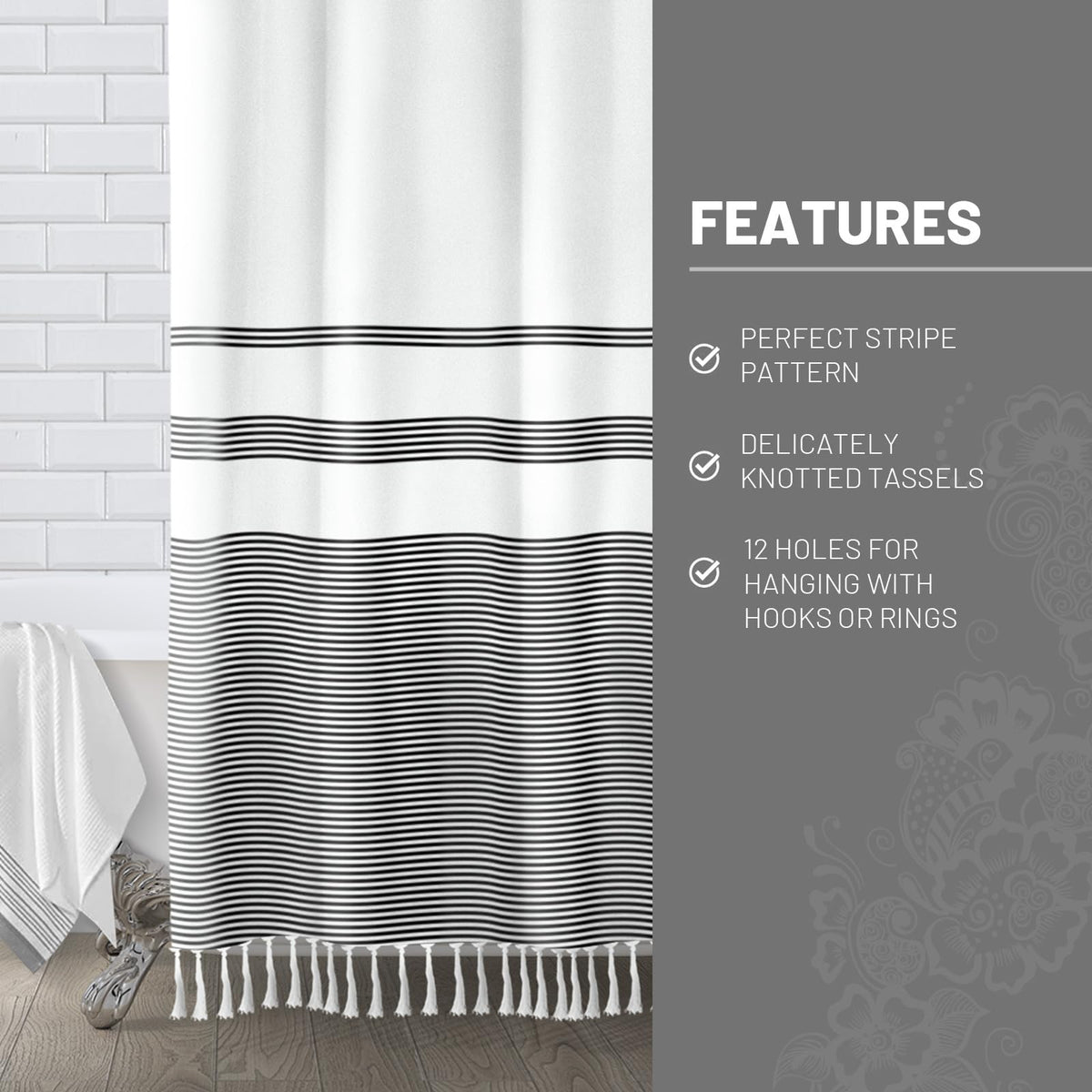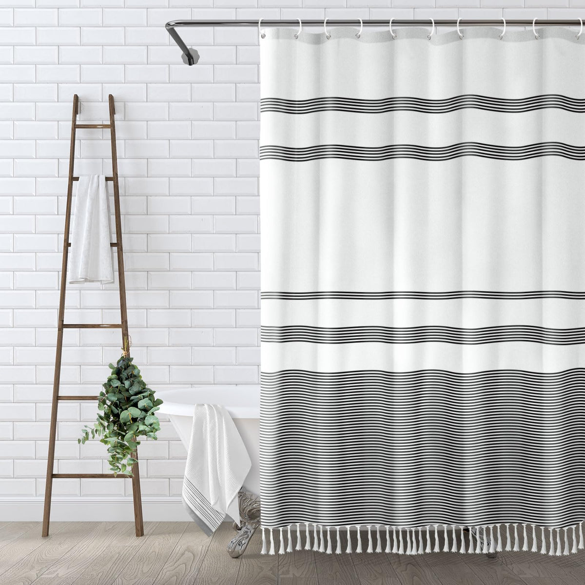 Awellife Boho Black Shower Curtain For Bathroom Stripe Tassel Shower Curtain 72 X 72 Inches Farmhouse Linen