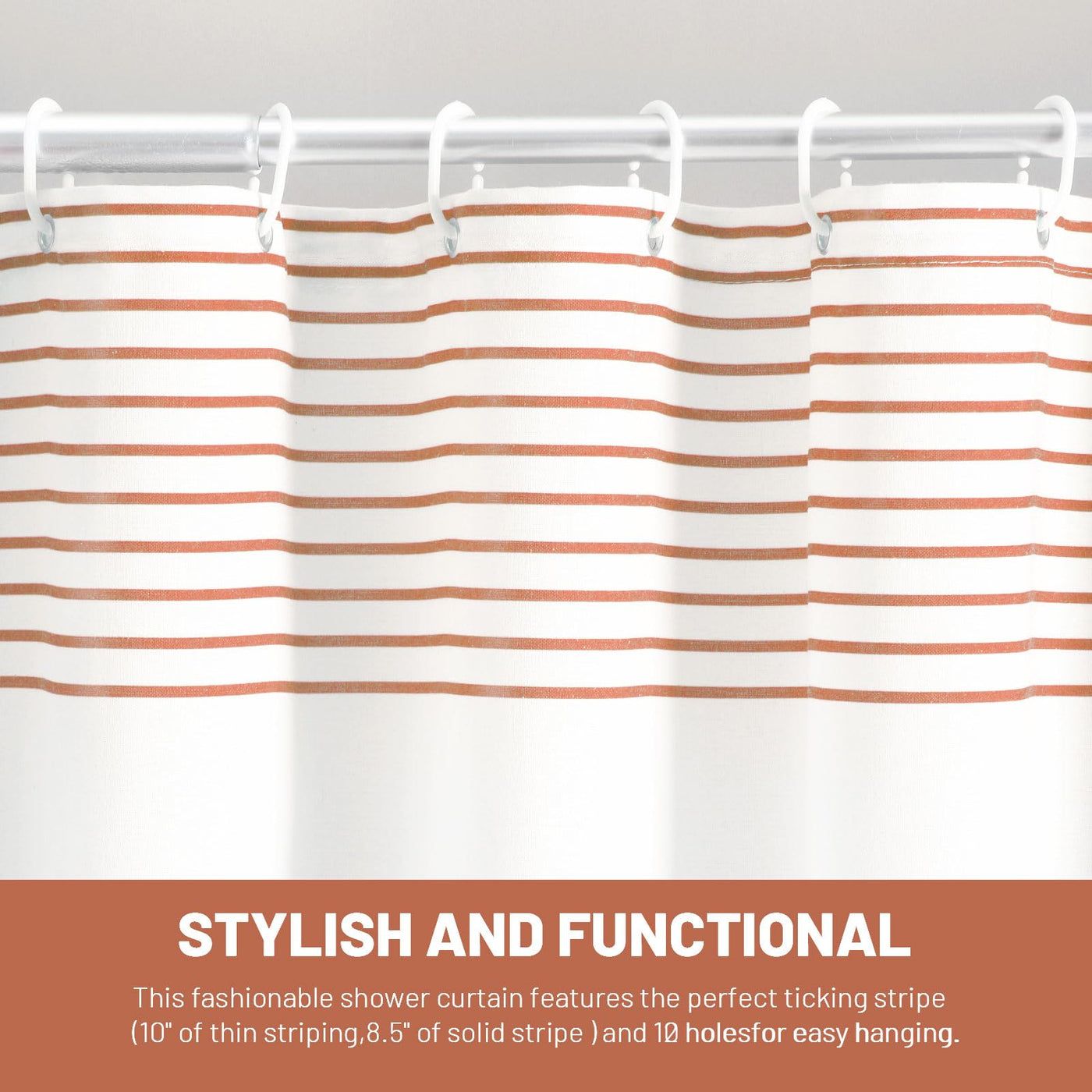 1. A 72*72 inch shower curtain + 12 plastic hooks.