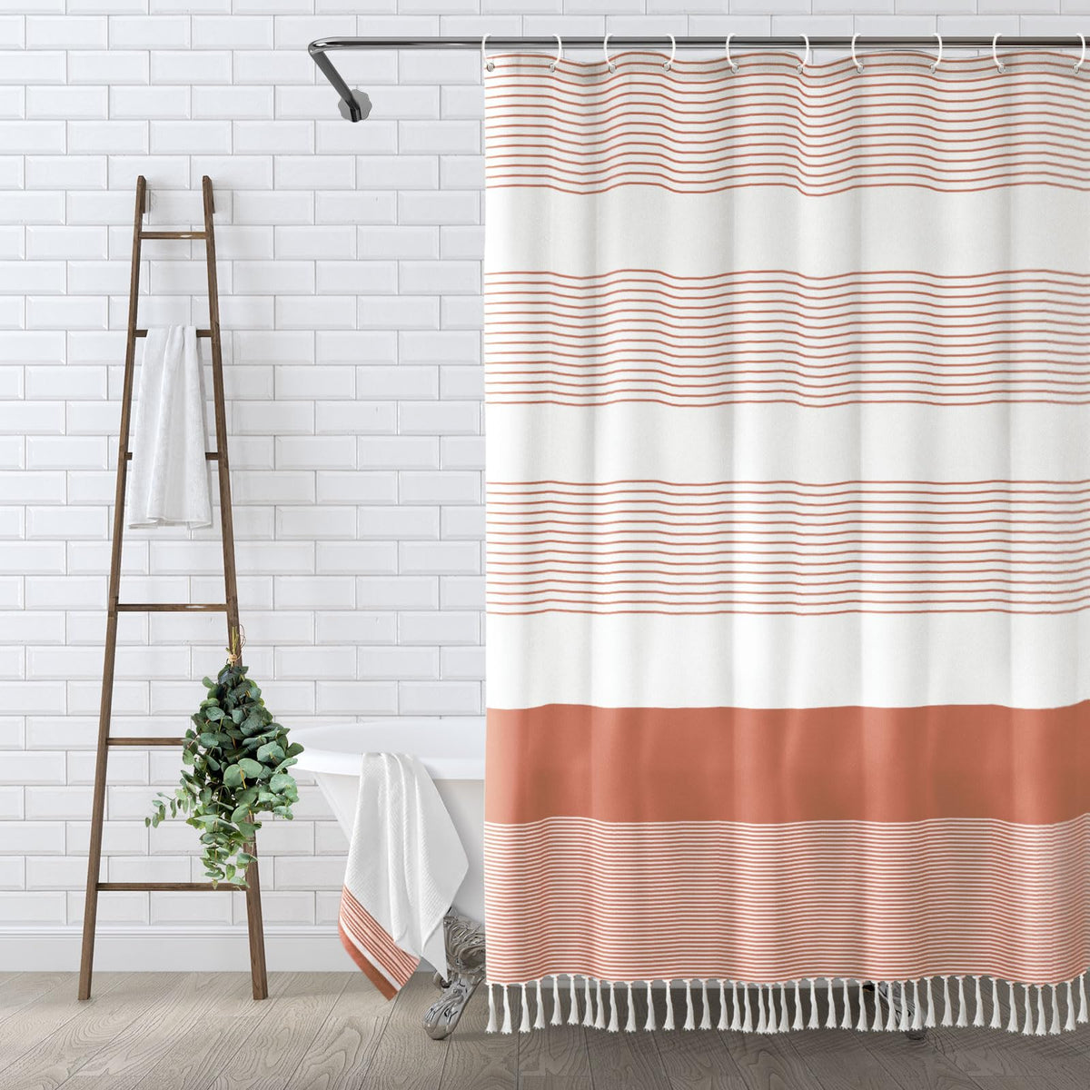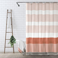 Awellife Boho Coral Shower Curtain For Bathroom Stripe Tassel Shower Curtain 72 X 72 Inches Farmhouse Linen