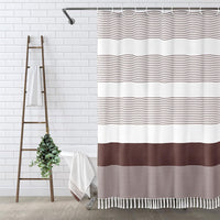 Awellife Boho Dark Brown Shower Curtain For Bathroom Stripe Tassel Shower Curtain 72 X 72 Inches Farmhouse Linen