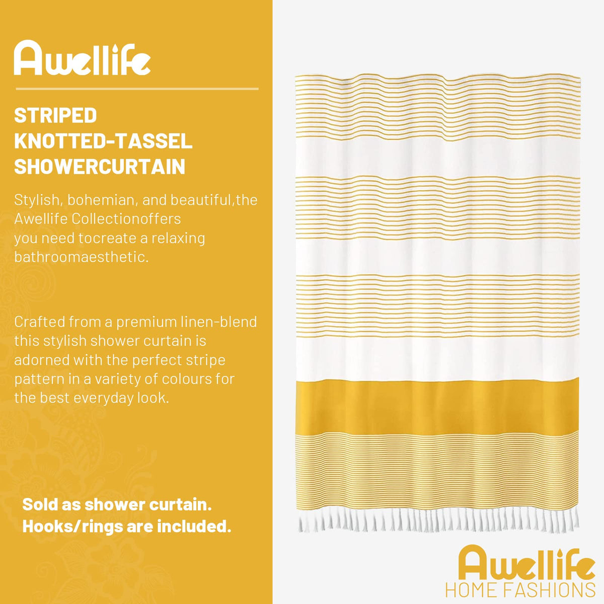 Awellife Boho Yellow Shower Curtain For Bathroom Farmhouse Natural Linen Stripe Tassel Shower Curtain (Yellow, 72' L X 54' W)