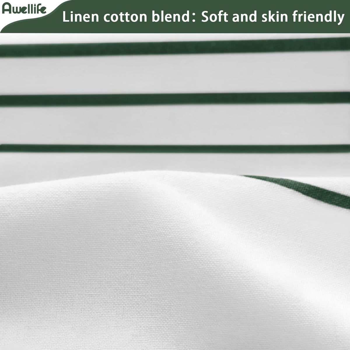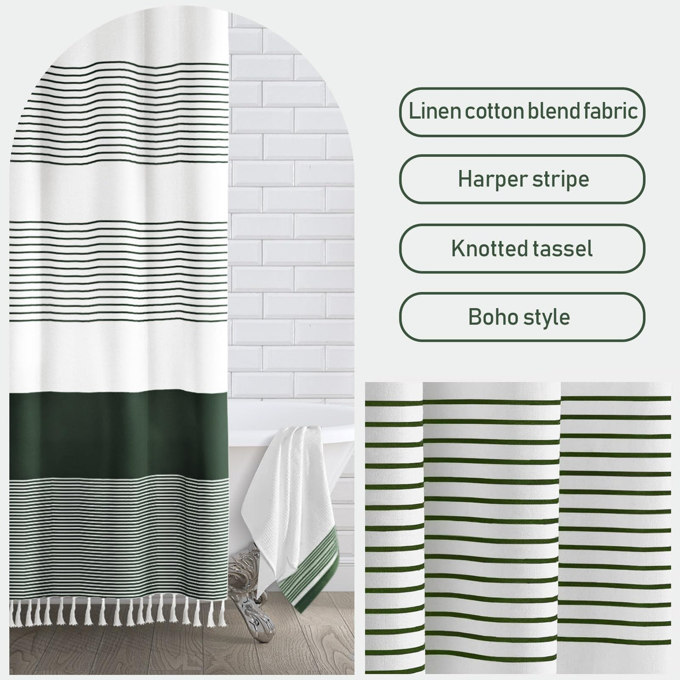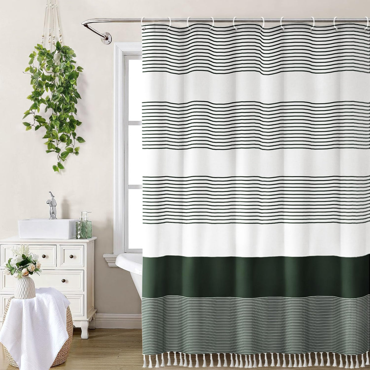 Awellife Dark Green Shower Curtain For Bathroom Boho Stripe Shower Curtain With Tassel 72 X 72 Inches Farmhouse Linen Cotton