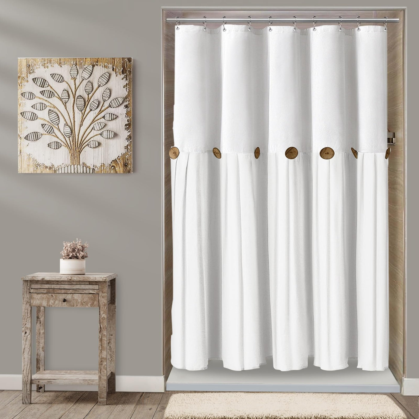 Awellife Farmhouse Shower Curtain For Bathroom White Linen And Cotton Woven Fabric Country Rustic Style Shower Curtain Set 72' L X 60' W
