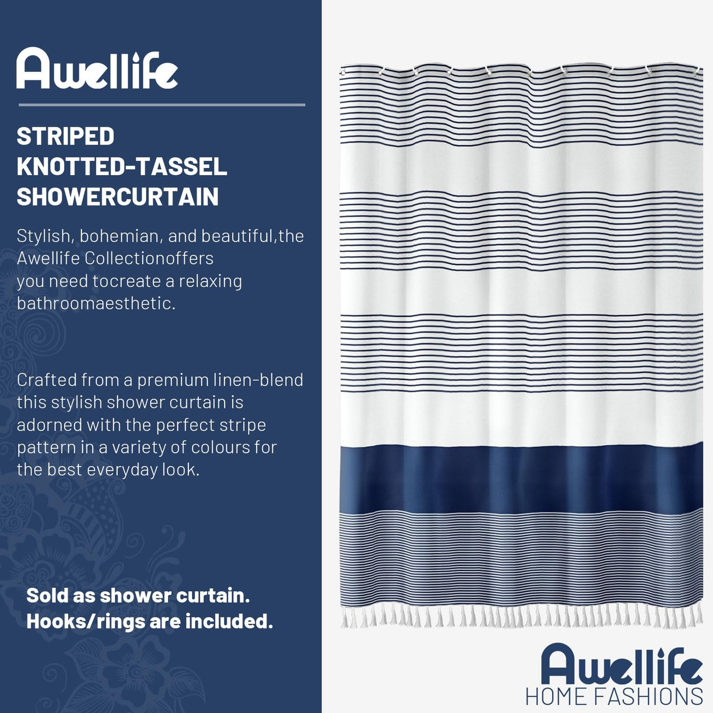 Awellife Navy Blue Shower Curtain For Bathroom Stripe Tassel Shower Curtain 60 X 72 Inches Farmhouse Linen Stall