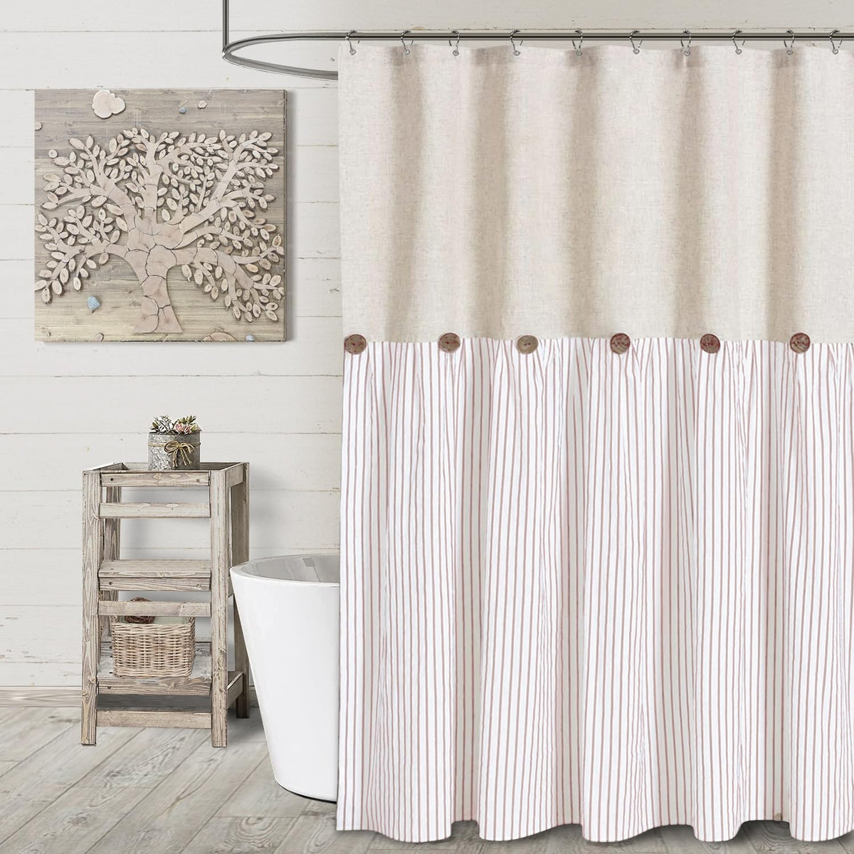 Awellife Pink Shower Curtain Farmhouse Linen Button Beige Shower Curtains,Linen And Cotton Woven Fabric,Country Style (72' L X 72' W)