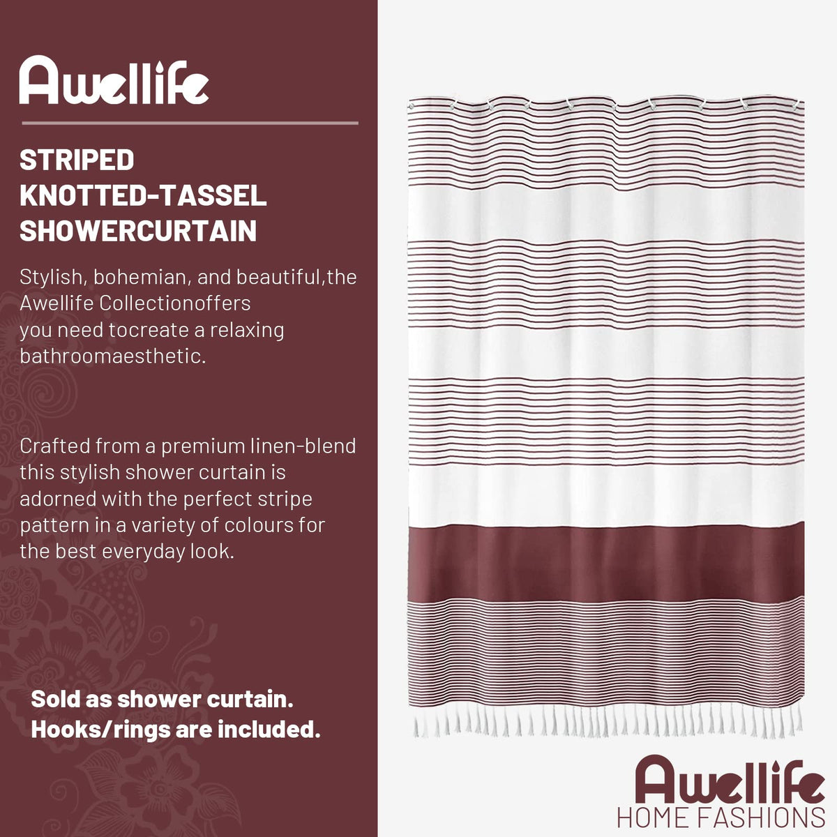 Awellife Red Burgundy Shower Curtain For Bathroom Stripe Tassel Maroon Shower Curtain 72 X 72 Inches Farmhouse Linen