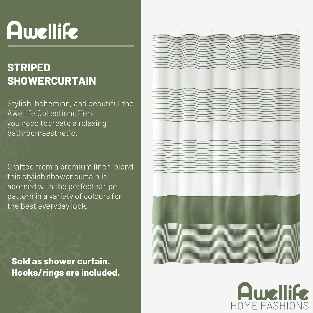 Awellife Sage Green Shower Curtain For Bathroom Boho Stripe Shower Curtain 72 X 72 Inches Farmhouse Linen